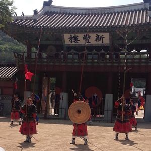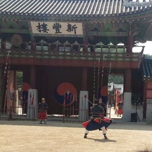 また、華城行宮では(たまたま丁度良い時間だったからかもしれませんが、)朝鮮兵士の迫力ある武芸24技を再現した武芸24技公演も見ることができました。
