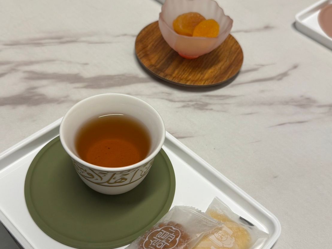 まずは待合でウェルカムティーとお菓子を頂きました。 それから明洞の街を眺めながら足浴