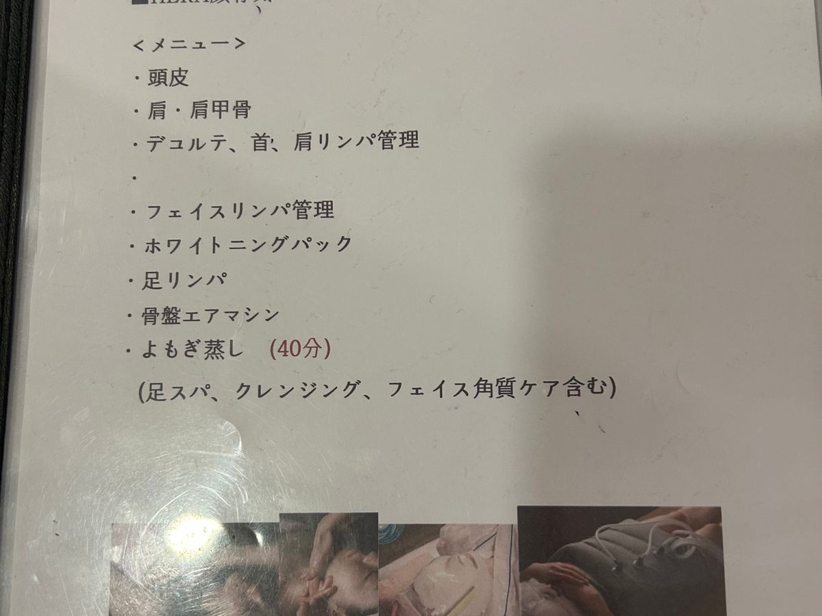 よもぎ蒸しがないプランもあると嬉しいかなぁと少し思いました。