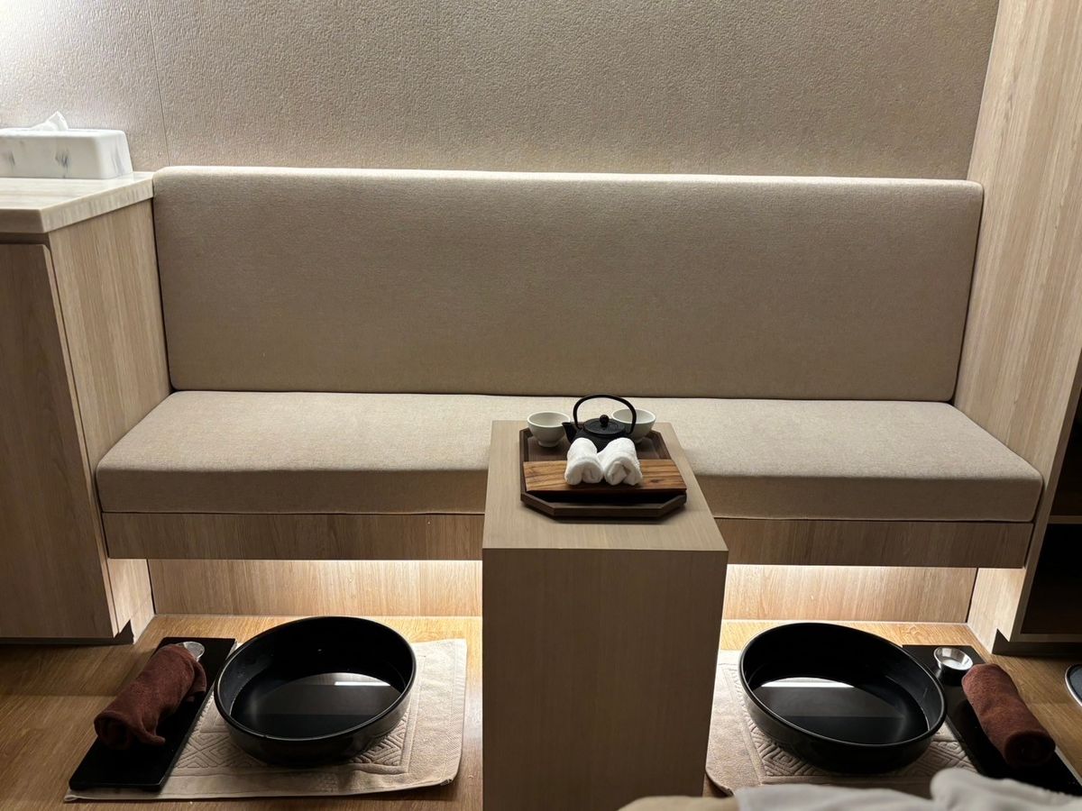 マッサージとよもぎ蒸しの2時間コースを夫と2名で予約。当日、日本語を話すマダムから眉アートやコルギマッサージも強く勧められましたが、支払い済みのコースだけお願いしました。よもぎ蒸しはお尻が熱くなるので、陶器の椅子の端に座って脚を開くと良いと思います。