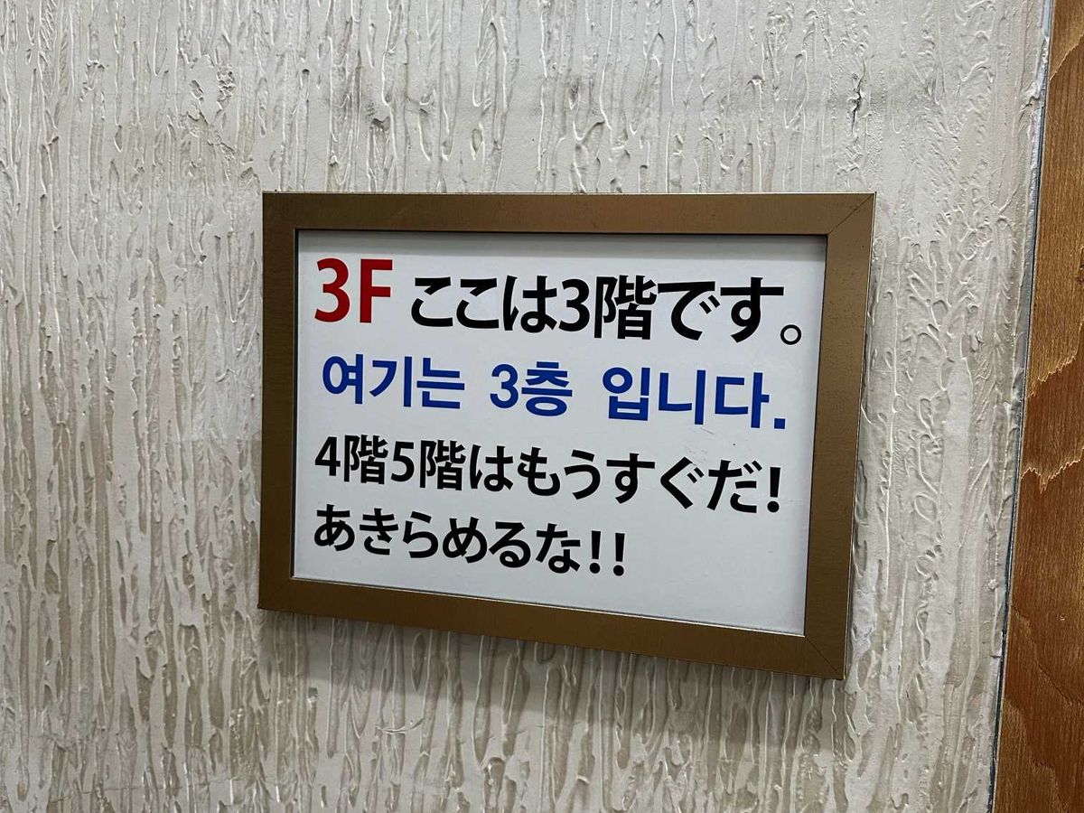 場所は、雑居ビルのような外観ではありますが、看板も日本語で出ているので分かりやすいかと思います。4階まで階段を上るのはしんどい方もいるかと思いますが、励ましてくれるコメントが貼ってあるのは可愛かったです笑