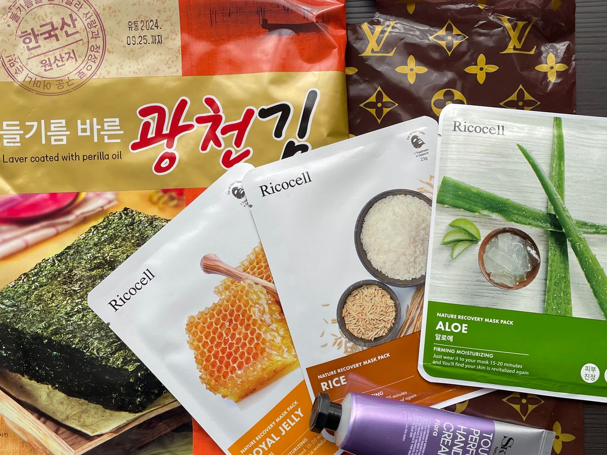 施術後、お茶と雨、またお土産に韓国のり、フェイスパック数枚、ハンドクリームも頂きました。