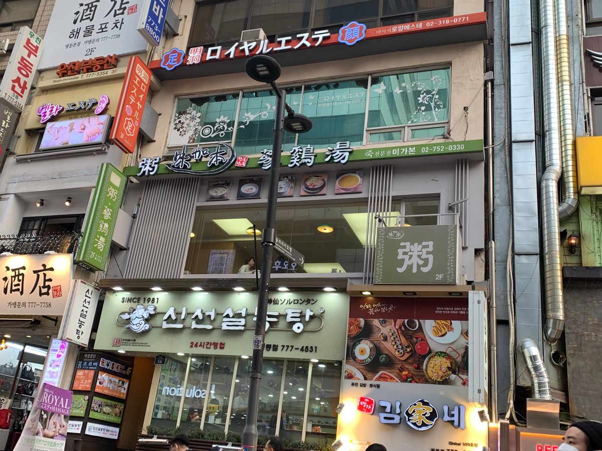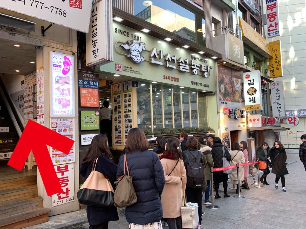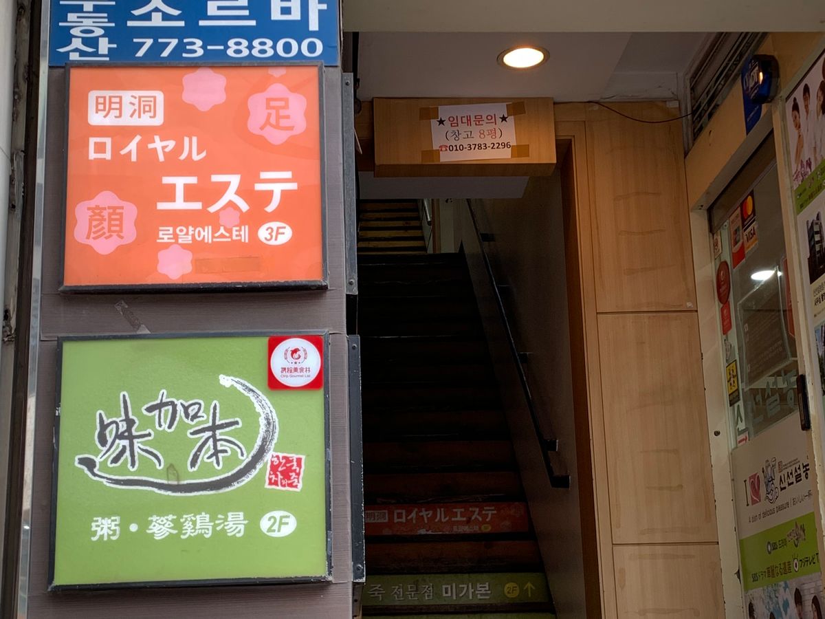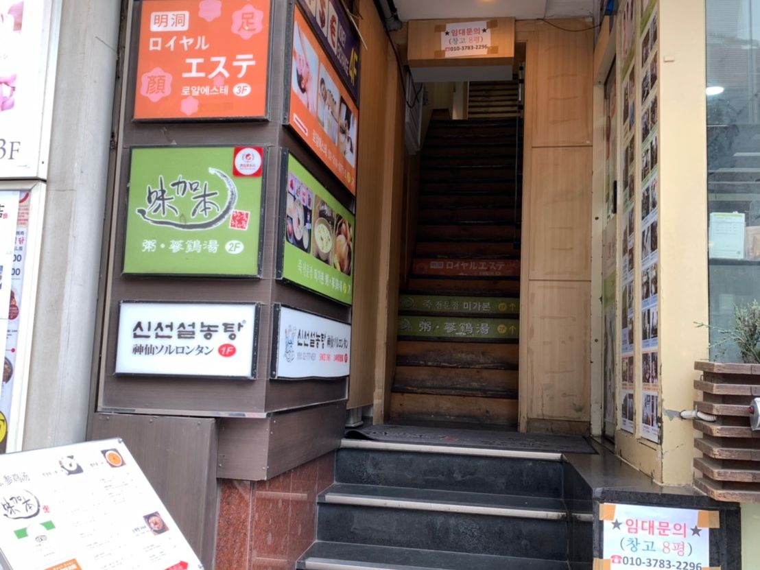 初めての韓国で、初日の夜に伺いました。初韓国だったので場所が少しわかりにくかったのですが、明洞の街の中に、ちょうど迷っている場所辺りに日本人の地図を配っている方がいて道を教えてもらい無事到着。
