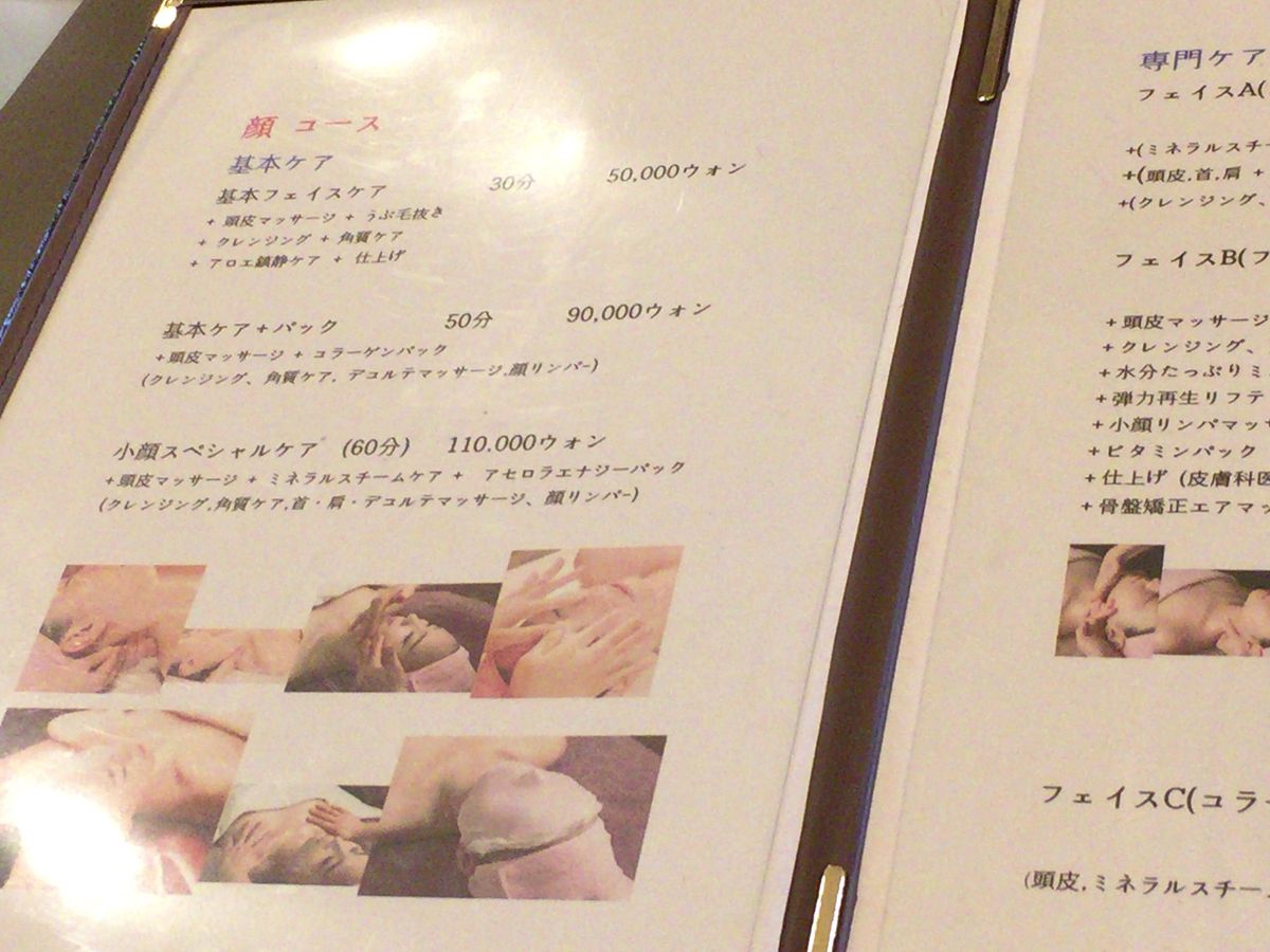 足や整体のマッサージでも60分6,000円程度はするのが今の韓国の物価ですが、こちらは、60分5,000円程度で顔も骨盤ラインもマッサージを受けられ安さを感じました。