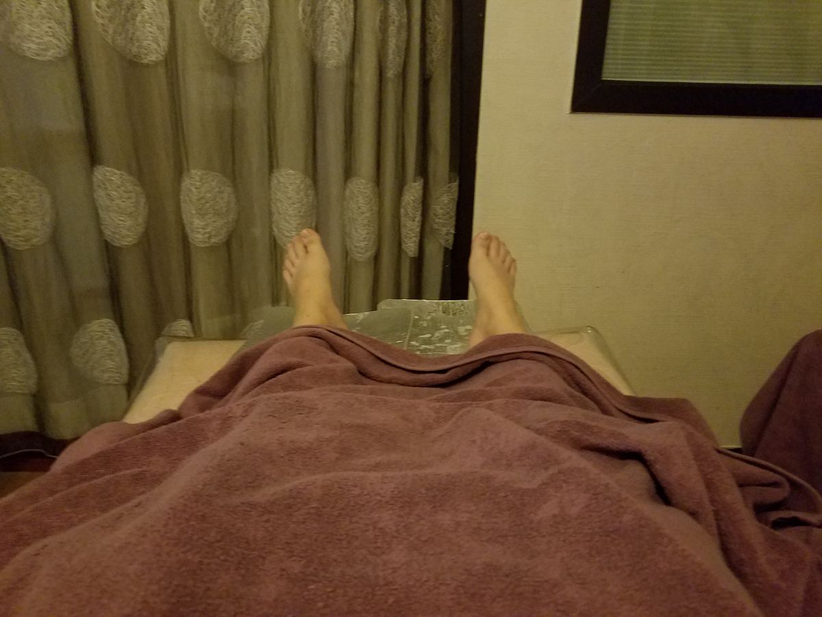 足湯から始まりベッドでの足のお手入れとマッサージ。実は他の日に他のお店のマッサージも受けていたのですがこちらもgood job !