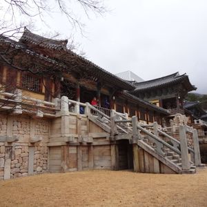3回目の韓国旅行で初めての遠出を決行!KTXの乗り場に行く時、改札が無いことに驚きました。ガイドさんの説明によると、ネット予約が普及したためだそうですが、日本では考えられない光景でした。新慶州でガイドの明さんの出迎えを受け、一路仏国寺に!今日は私達だけとの事で、ちょっと得した気分でした。桜の名所と聞いていたのですが、残念ながら1週間遅かった様です。桜も終わり、金曜日だった事も幸いし、全行程ゆっくり説明を受けながら回る事が出来、大満足♪とても掘り下げた説明をして頂き、ますます韓国ファンになりました。お昼もボリュームがあり、どのおかずを頂いても大変美味しく、良いお店に連れて行って頂けた事に感謝です。
