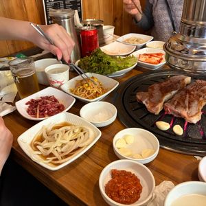 入店して直ぐに餃子スープ、ジャガイモチヂミ等を写真で見せたので、早く提供され、それが凄く美味しくて、キムチも日本の物が好きですが、ここはキムチも美味しかったです。これも、ガイドさんが時間を有効に活用する様に!との配慮です。その後もプランとは違う自分達では行けない、時代劇に出てくる建物が立ち並ぶ所を散策して、ちゃんと説明もしてくれました。本当に素敵な通りで、リノベされて、お店になってたり、生活して居る様でした。金浦空港のオプションの送りも私達の推しの歌を流してくれて、とても親切で楽しい話も日本語に変換して見せてくれるので、言葉に困る事はなかったです。至れり尽せりの最高のガイドさんでした。