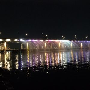 Nソウルタワー→漢江レインボウ噴水→東大門の予定でしたが、中国と韓国の祭日と重なってしまい、ゴンドラまでが大渋滞、チケット売り場も大行列。運転手さんの判断で南大門に変更で大正解。Nタワーは登ったことがあるので問題無し。ゆっくり買い物後、漢江噴水の練習放水を橋の下から見せてもらい感激。噴水ショウは音楽に合わせて上下左右放水でとても奇麗でした。祭日だけあって地元の方々は色々なテントを張って宴会してましたよ。運転手さんは公園の隣に車を横付けして待っていてくれたおかげで全く歩くことなく乗車出来、次へと出発!東大門ではタッカンマリ横丁に行きたいことを告げると危なくない道を教えてくれ、お勧めのお店も教えてくれて、最後まで親切でした。臨機応変に内容も変えられて、解説案内、通訳もしてくれてチャーターの良いところでしょうね。