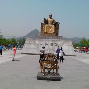 昌徳宮では日本語のガイドさんが一時間かけて一緒に回って分かり易く説明してくれて、興味をもって楽しく見学できました。最後に光化門の大王世宗の銅像の前で写真を撮りました。合計5時間のひと時の旅でした。