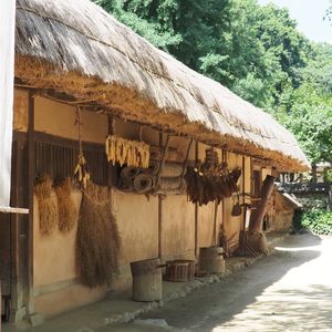 民俗村では拷問や矢の投げ入れ遊び体験などしながら移設した本当の民家を見て回り当時の生活を知ることができました。