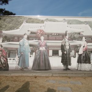 今年は暖冬だとか、とってもいい天気で春のようだとガイドさんがおっしゃっていました。ドラミアではドラマで見たシーンを色々見て回り、最後に衣装体験。合成写真は1枚20000Wですが、その他セットの中に入ったりしての写真は撮り放題でした。