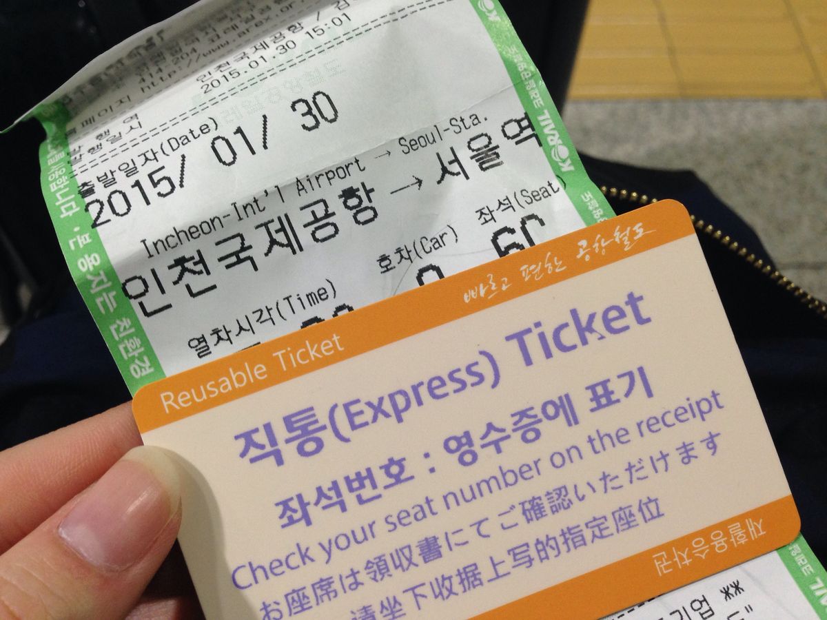 電車だと時間がはっきりしているのでスケジュールが組みやすいので、とっても便利ですし助かります。仁川空港に着いてからも空港鉄道の看板がすぐ目に入るので迷うことはないと思います。