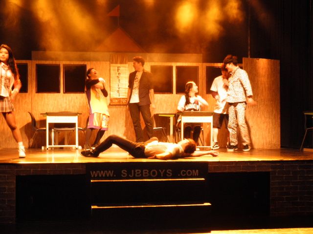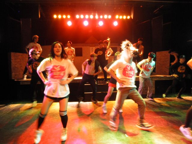 場内はステージとステージ下のフロアーがあり、ストーリー部分は主にステージ上で、ダンス部分はステージ下で進めていきます。