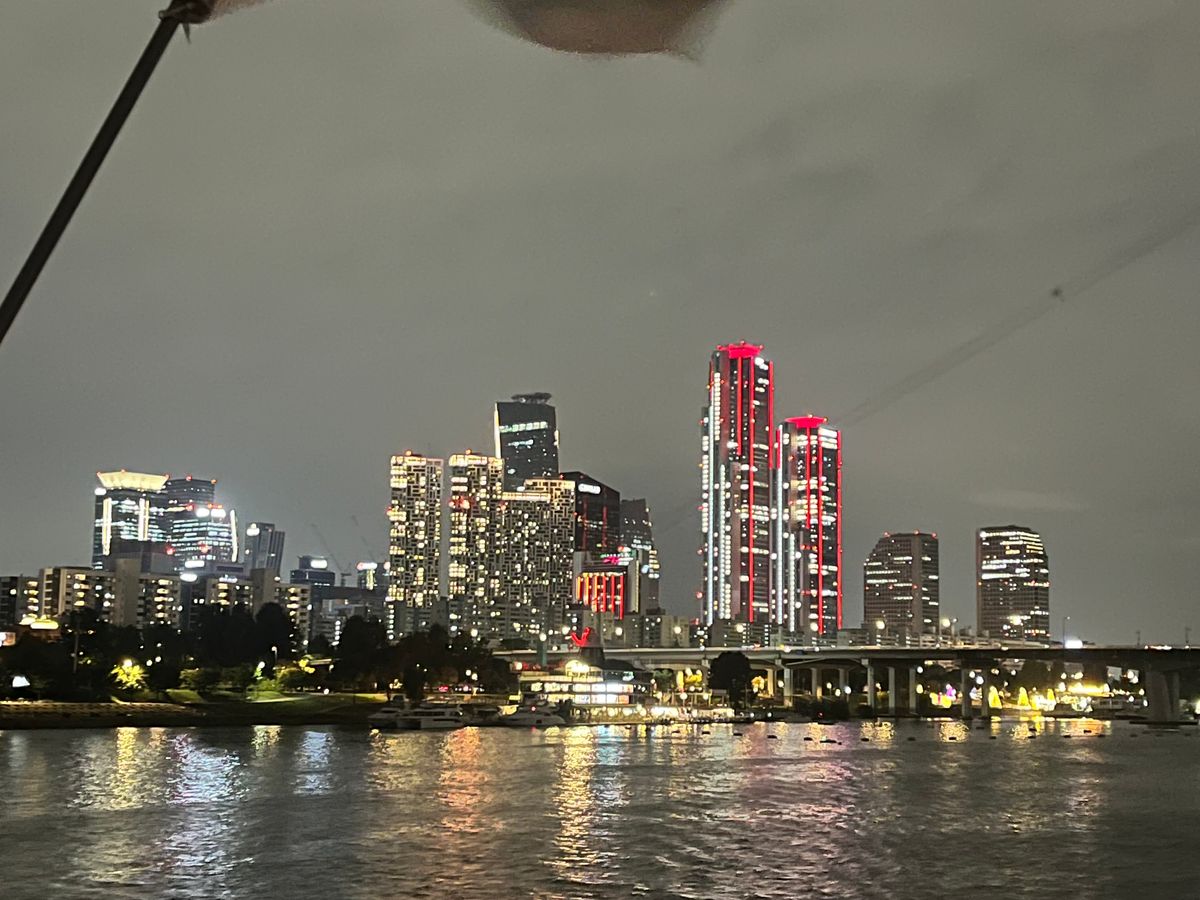 初めての韓国初めてのナイトクルージングでしたが、ガイドの金さんがとても優しくて色々な経験から豆知識まで教えてくださいました。