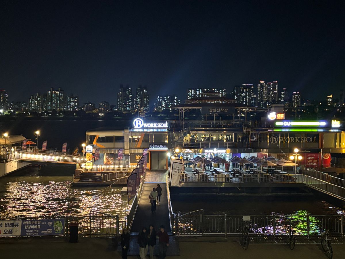 漢江クルーズを、娘と二人で楽しみました。夜景とてもきれいでした。光のショーも見ることができました。顔型のマークが現れたのはとてもびっくりしました。乗船前の漢江らーも美味しかったです。ガイドさんもとても親切で安心できました。時々楽しそうに口ずさむ歌ご印象的でした。