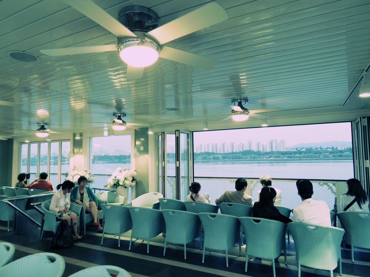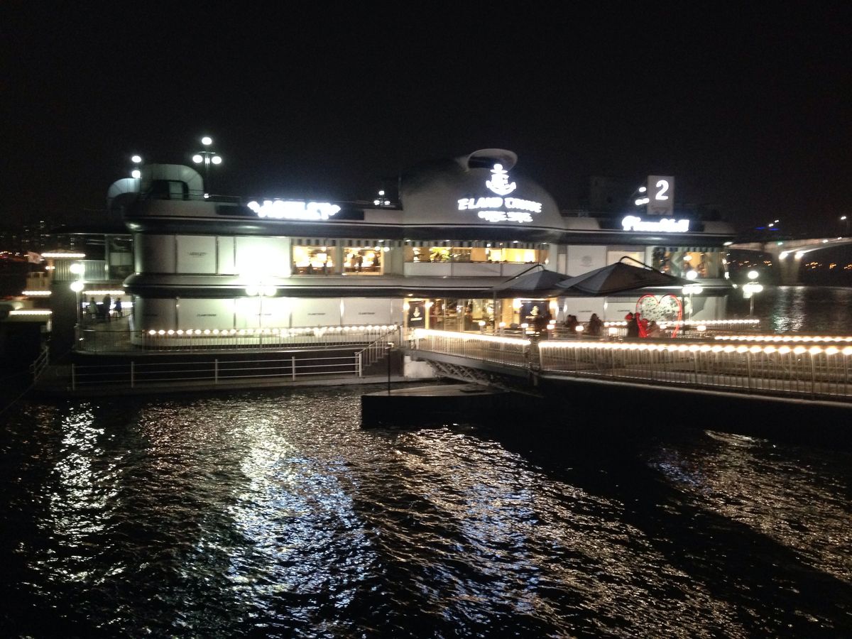 寒い時期の平日だった為か、運転手兼ガイドさんと私たち女2人で貸切状態でした。始めに食事でしたが、慌てることなく食べることができました。ドリンクは別料金と分かっていたので、ミネラルウォーターを2人でシェアしました。それからまた車で船のある所まで移動、いざ、クルージング!室内で椅子に座ってライブを見たり外を見たり、室内から出て、外へ夜景を見に行ったり、中にはコーヒーショップもあり自由に過ごせました。寒い時期でも全然大丈夫ですね^ - ^ とても綺麗な漢江の夜景を見ることが出来、大満足です!ガイドさんに質問すると、いろいろ教えて下さったので助かりました。
