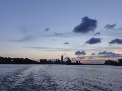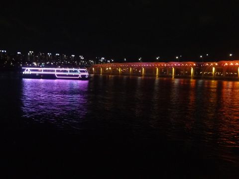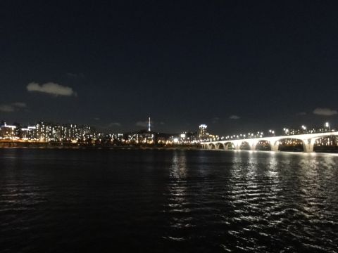 韓国の歴史そのもの漢がんを、川面を渡るここちよい風と共に夜景をみるもの、落ち着いた気分でとても優雅です。