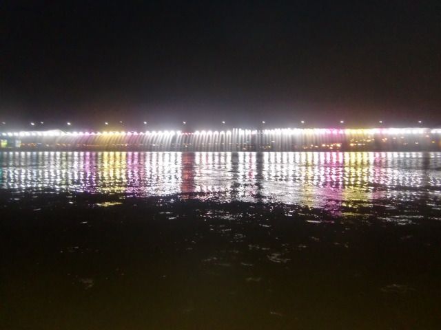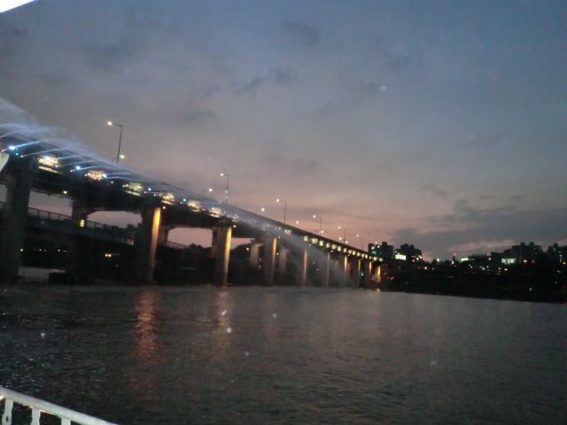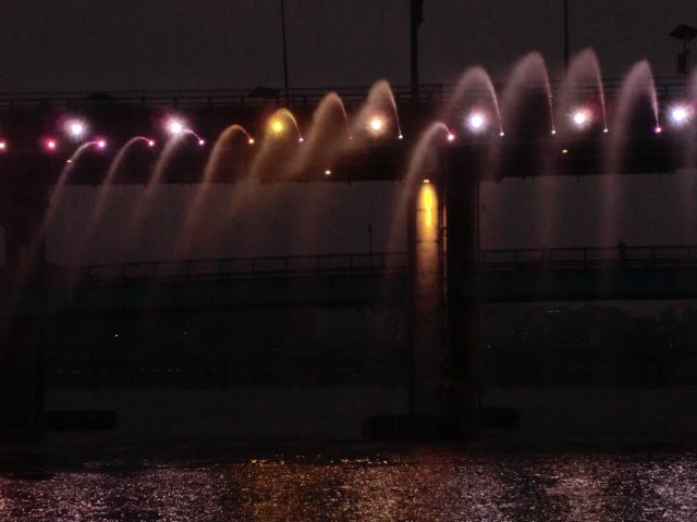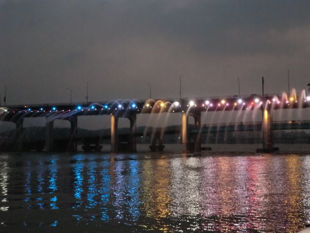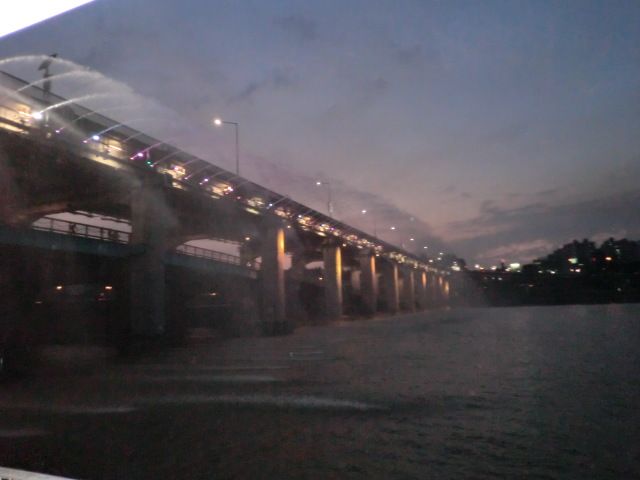 ショーが終わって、デッキの上から盤浦橋の噴水を見ましたが、目の前を通過した後、そのシャワーの中を潜ってのは驚きです。