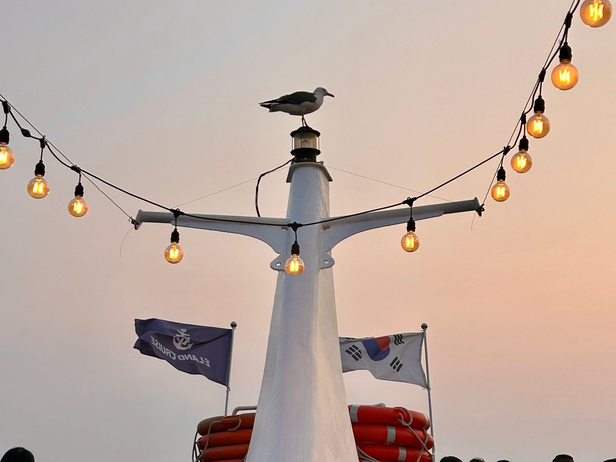 船内で鳥の餌、煮干しみたいなものが3000ウォンで売っていましたが、夜は鳥が食べないと売ってくれませんでした。しかし、他の客が餌付けしているのを見て、子供がどうしても欲しがるので、再度子供が掛け合うと、注意事項を説明され、売ってくれました。