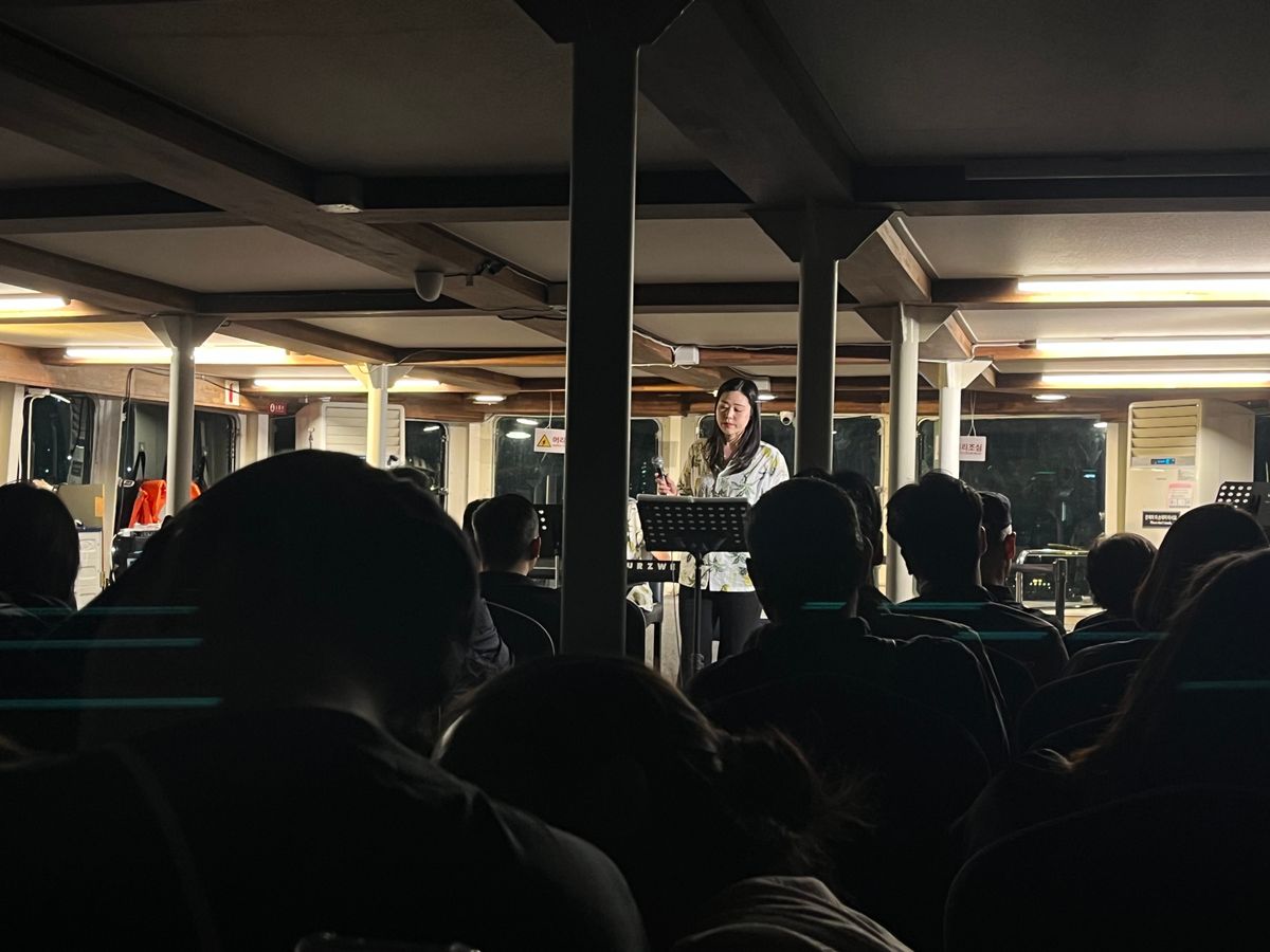 漢江ナイトクルーズは船が結構大きかったのでデッキに上がって景色を眺めたり、船内では弾き語りのライブ演奏を聴いたりと楽しい夜でした。