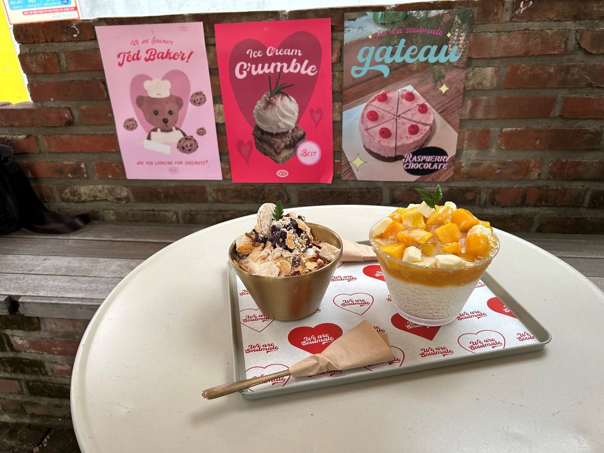 その後延南洞のカフェでかき氷も食べました。ふわふわのかき氷でした。延南洞は大学もあり、若い人たちの人気のスポットなのでおしゃれな店が沢山有ります。
