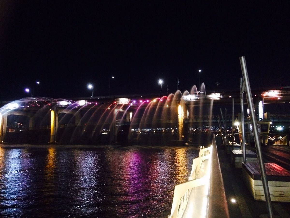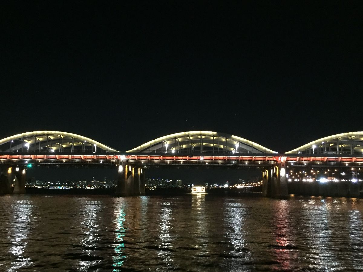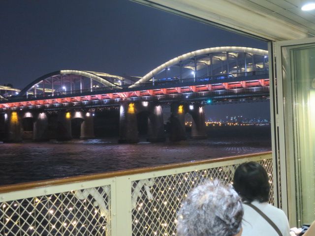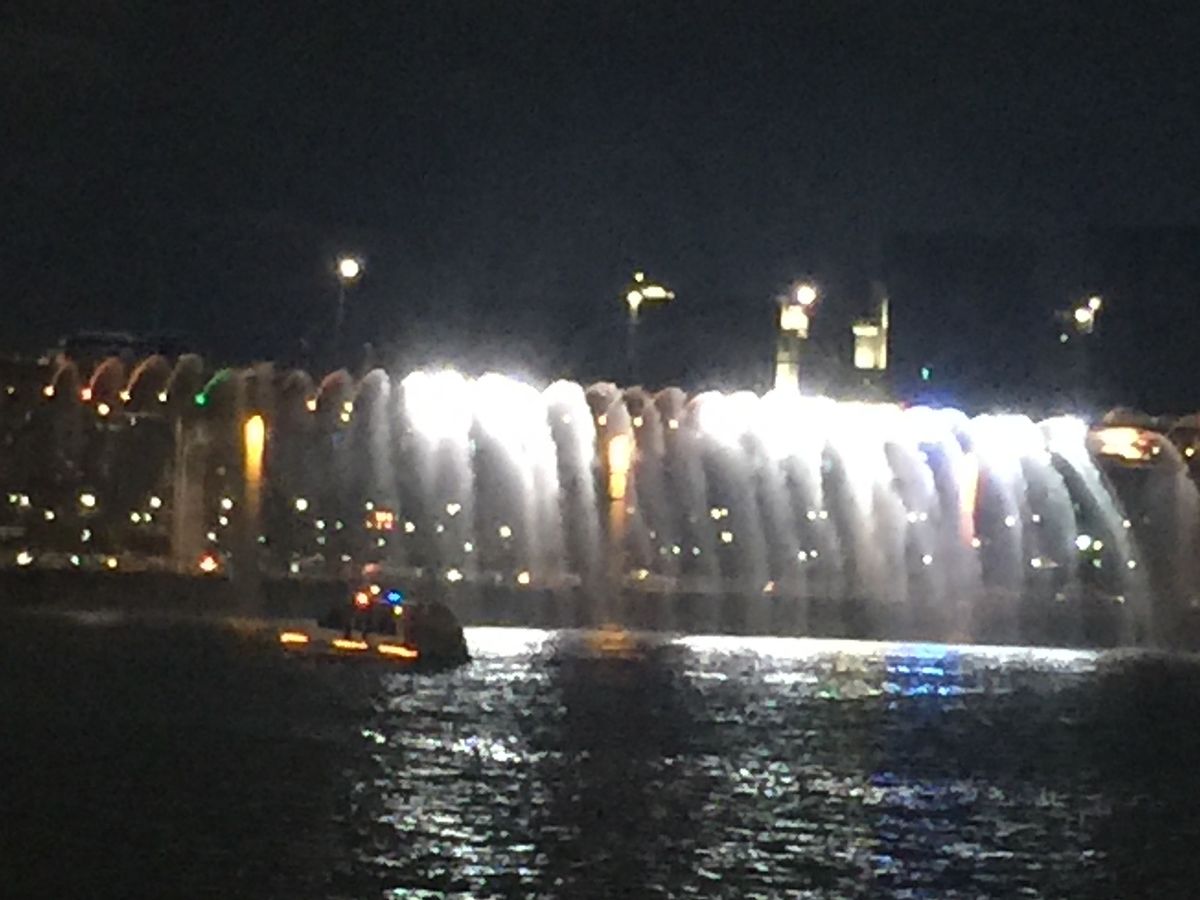 クチコミを見てすごく楽しみにしていましたが漢江ナイトクルーズで橋から虹色の光と共に噴水の水が出ていたのですが船が橋まで近づいてくれず遠くの方がでの見学となり全然感激しませんでした。