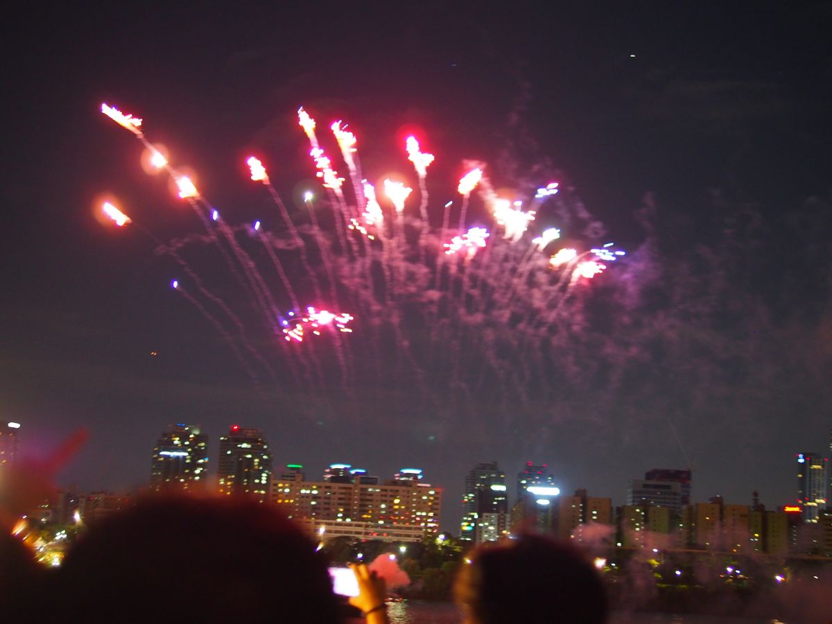 たまたま韓国外のテレビ取材が来ていたようで、土日しかやってない花火打ち上げがあってラッキーでした。