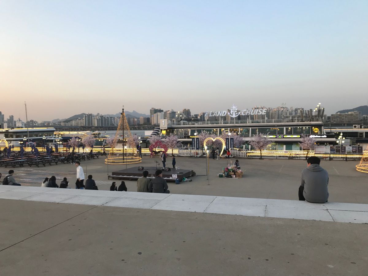 船の中では、めちゃくちゃ歌が上手い男の人のギターの演奏もあって、ハングルの歌で歌詞は全く分からなかったですが、肩を寄せ合うカップルやら盛り上がる若い子達もいて、ムードはとっても良かったです( ^ω^ )