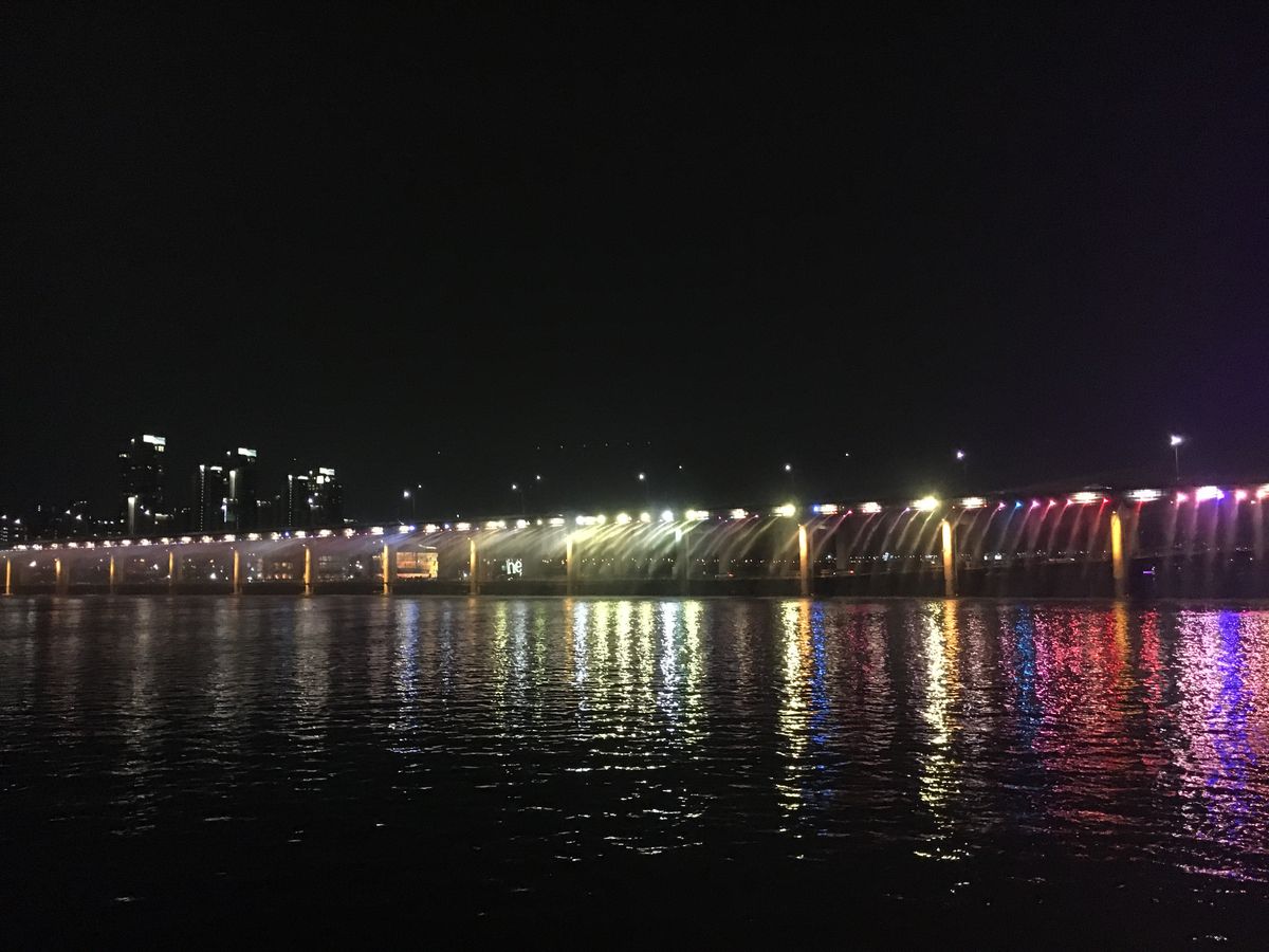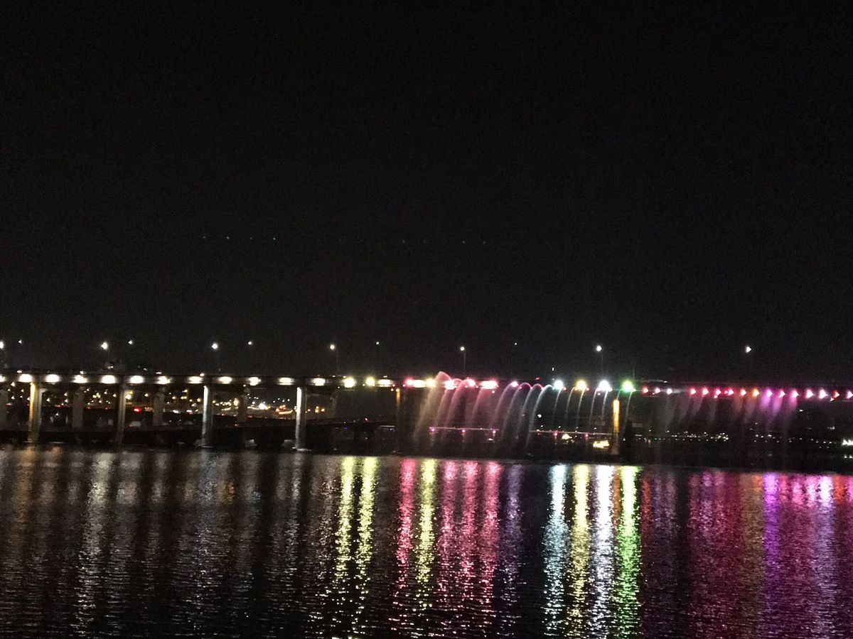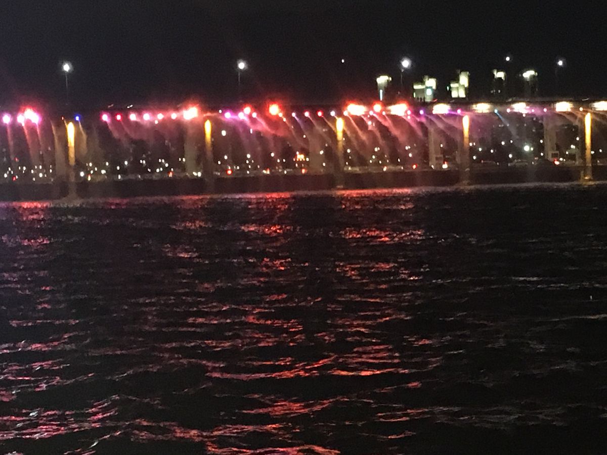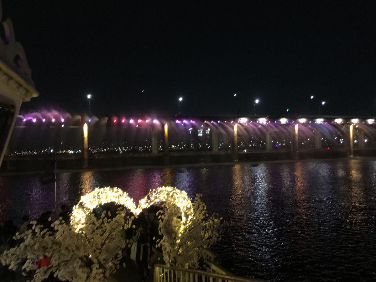 クライマックスは、盤浦大橋からの虹色の噴水ショー とっても綺麗でした。Nソウルタワーからの夜景もステキですが、是非、ソウルを訪れる機会があったら、漢江からのソウルの夜景も楽しんでみてはいかがでしょうか?とってもロマンチックなひとときを過ごせると思いますよ。