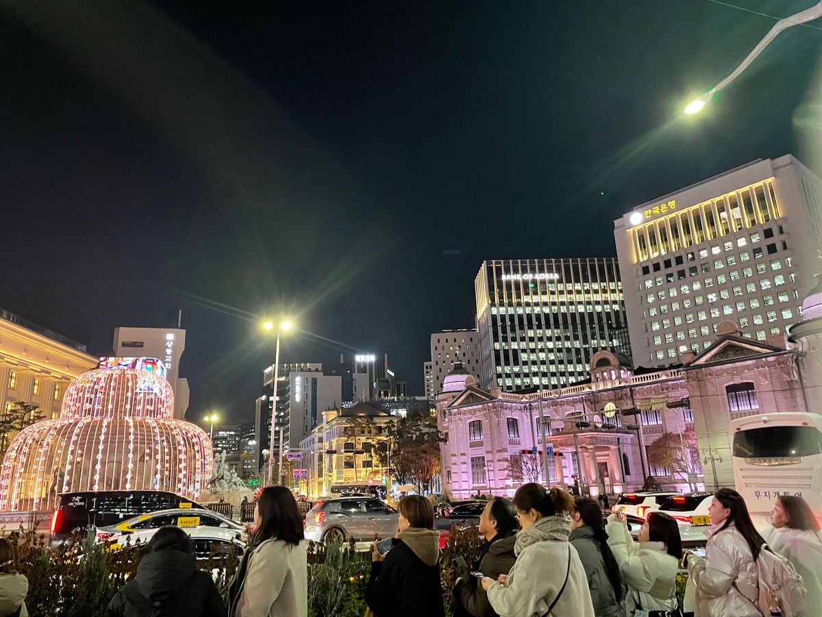 日本と韓国は実際には約1時間程の時差がございますため、ツアースタート時には暗くなる前だったかと思います。