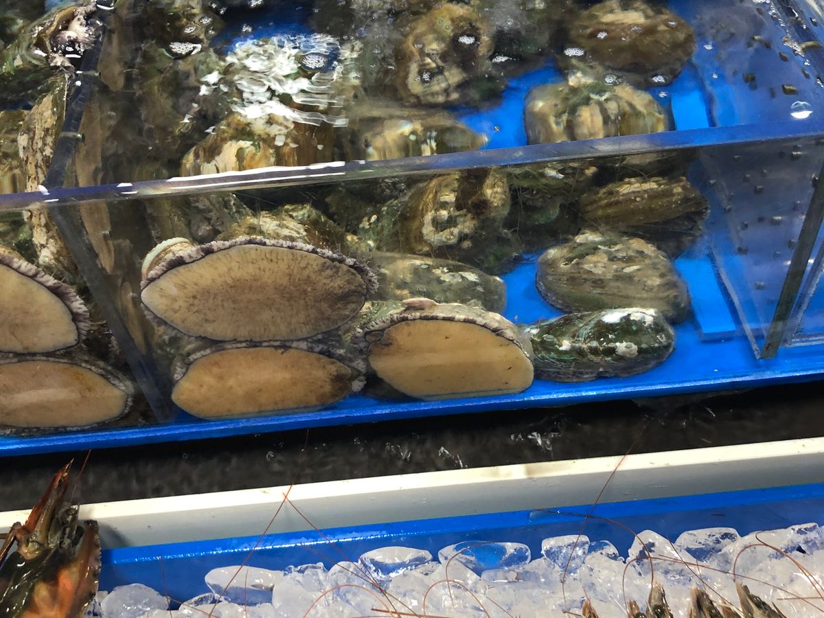食べたい魚、貝を選んで屋上のレストランでお刺身やお鍋にしていただきました。