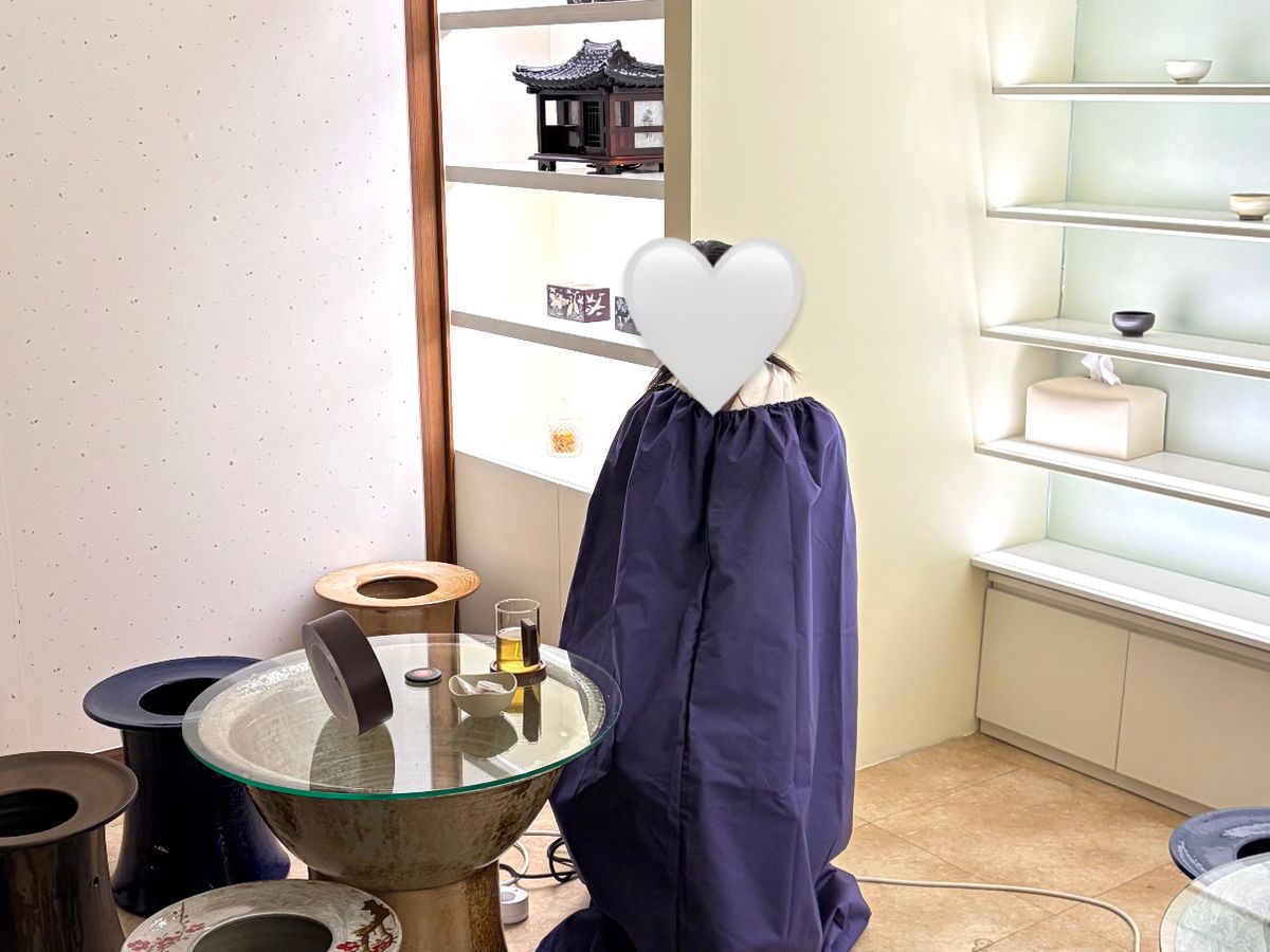 日本語ができる通訳さんが優しく案内してくれて前の人がまだ終わってないから少し待たせるのでよもぎ蒸しをサービスしてもらいました♪