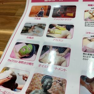 まずはサウナ2種類。自分のタイミングで出ます。あまり得意ではないので早めに出ました。次に湯船でゆっくりと温まります。気持ちよかった。そして垢すりの基本コース。力加減も聞いてくれて気持ちよかった。全身の泥パックしたら洗い流して次にオプションの上半身マッサージ。ガチガチになった首、肩、背中、腰、おしりと腕。すごく気持ちよかったので追加して大満足。