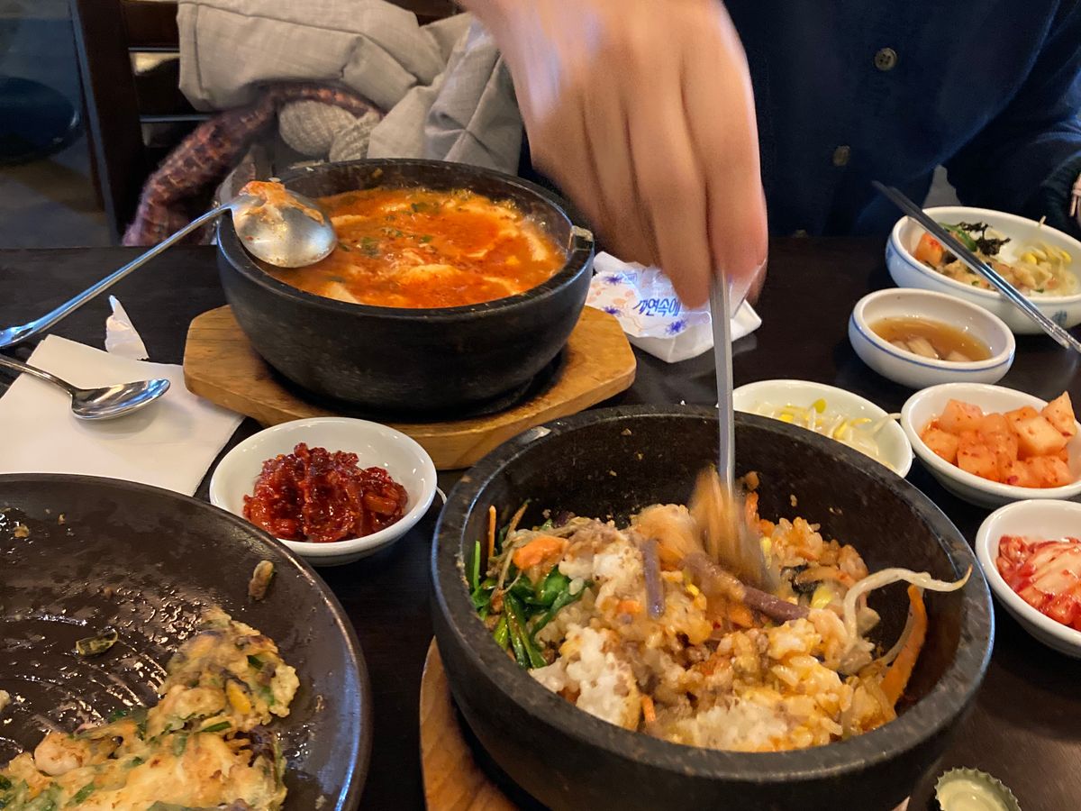 石焼きビビンバは香ばしく、スンドゥブはぐつぐつ迫力満点、食べきれなかったチヂミは持ち帰り、大満足です。