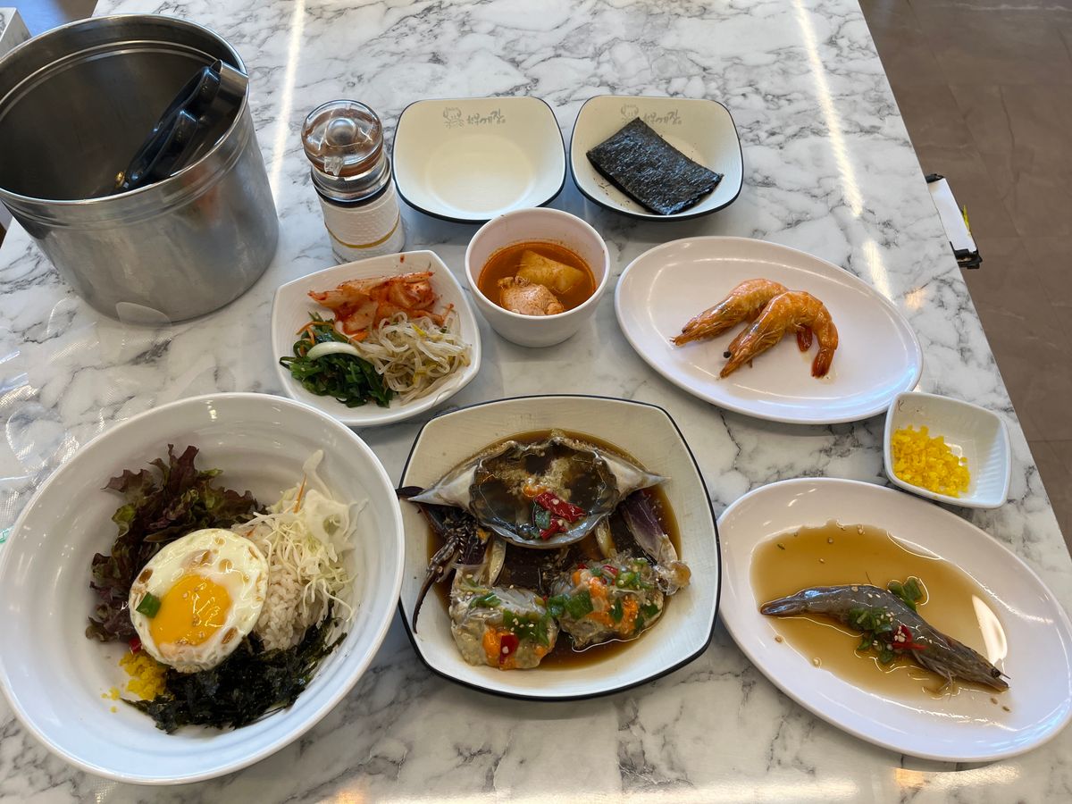 東京の新大久保には月1回以上は行っていますので、ケジャンもそれなりに食べていますが、やっぱり本場の韓国のほうが美味しく感じました。見るからに新鮮な渡り蟹は身が本当に甘く、思わず笑顔になります。また生(カンジャンセウ)と茹でたものが出てくる海老はプリプリで、こちらも美味でした。