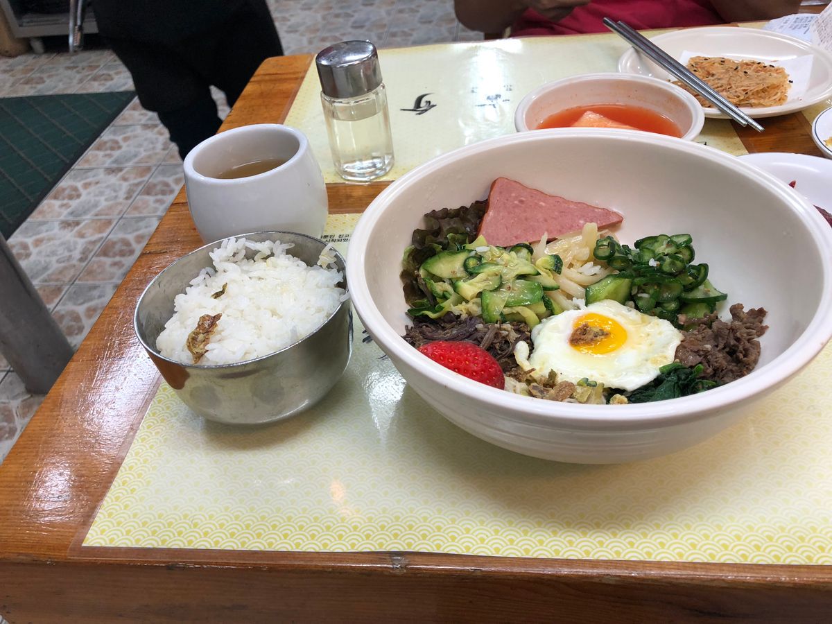 ビビンバ(卵焼き付き)やキムチ類、スープもセットに含まれていて、金額的にもお得でした!複数の定員さんが日本語を話せるので、安心です!