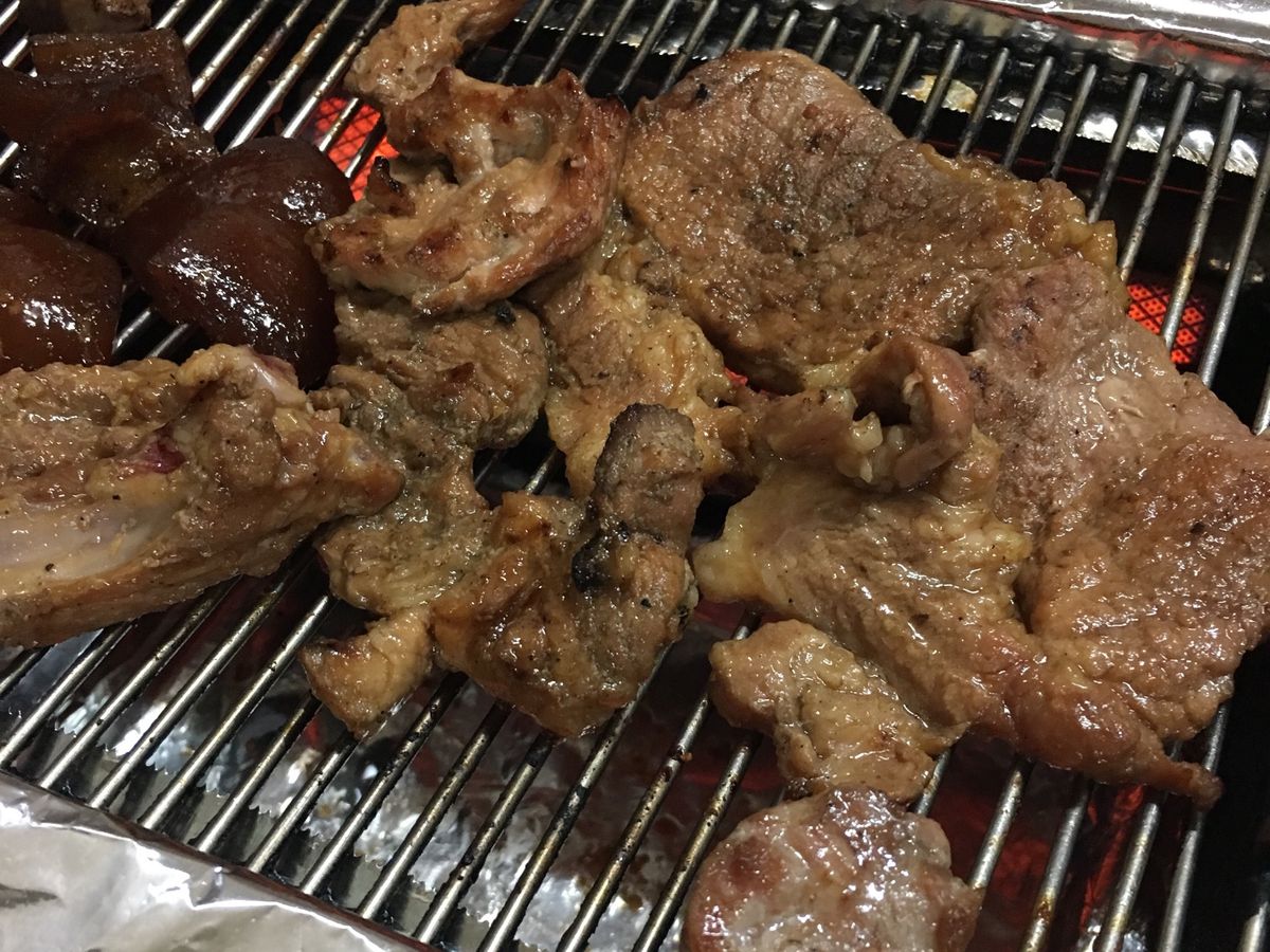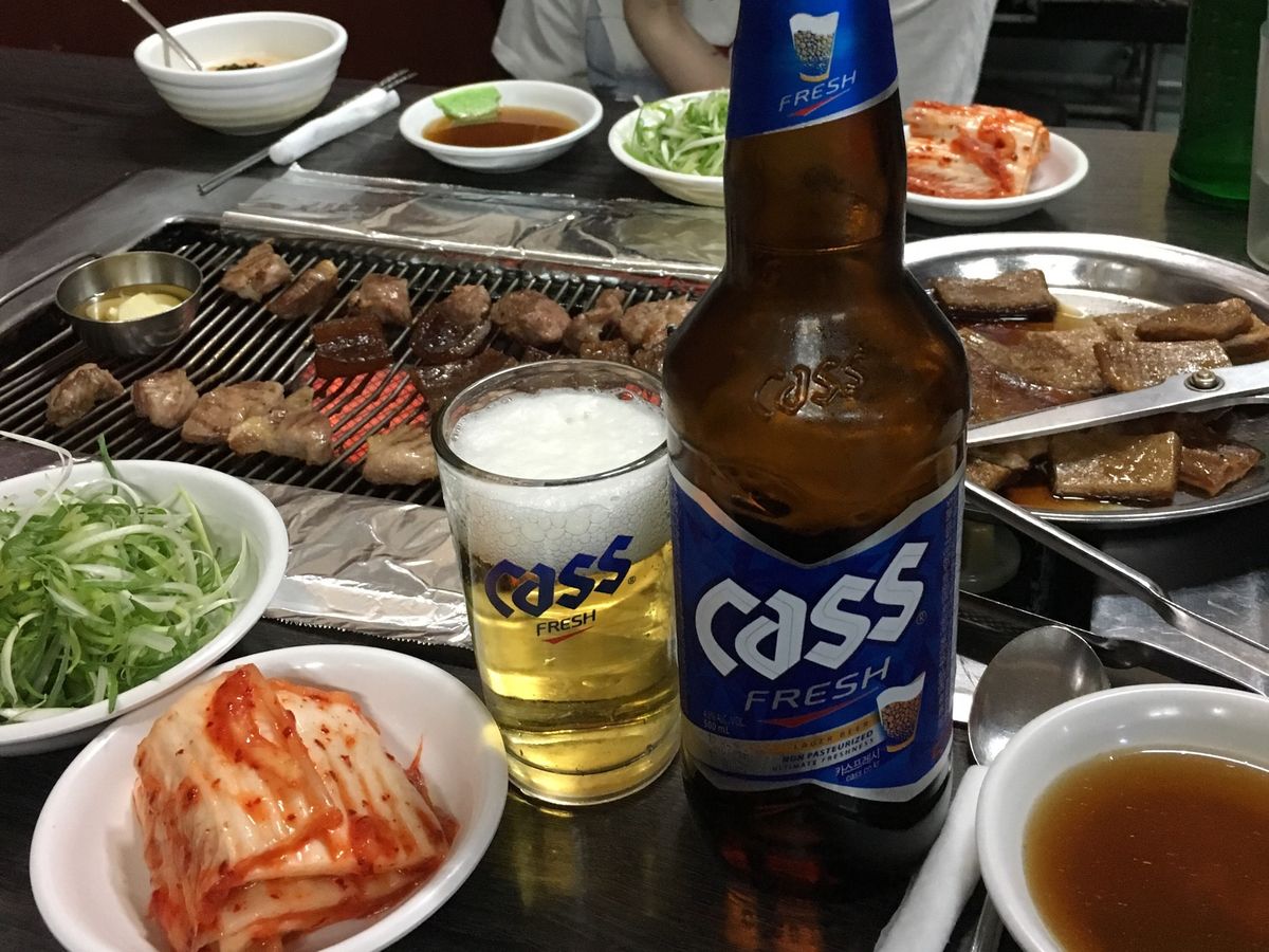 20時のショーを見るために、18時で予約をしました。少し早いかなと思いましたが、18時半には地元の人で店がいっぱいになりました。かなりの人気店のようです。日本語は通じませんが、世話焼きのお店の人が意図を汲み取ってくれます(笑)。メニューは豚肉が3種類だけなので、1つづつ頼みました。1人前がデジカルビが300g、それ以外が200gなので、量もたっぷり。豚の皮は100gでいいかなと思いますが、ビールのお供にピッタリです。デジカルビを気に入った息子が、デジカルビを追加注文して、総量1キロを3人で完食しました。美味しかった〜!ビールも飲んで3人で6,000円弱だったので、財布にも優しいです。