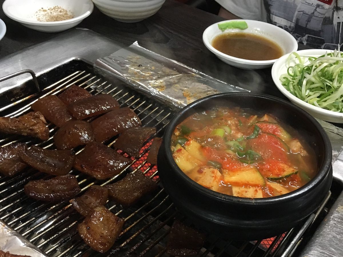 韓国のデジカルビは甘い味付けが多いですが、こちらは程よい甘みでお肉もやわらかく美味しかったです。コッテギ(豚の皮)は焼くと香ばしくてお酒のおつまみには最高。