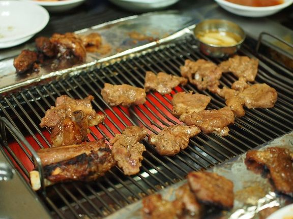 メニューは3つ、トンコギ(ロース肉)、デジカルビ(味付け肉)、コッテギ(豚の皮)、どれも美味しかったです。