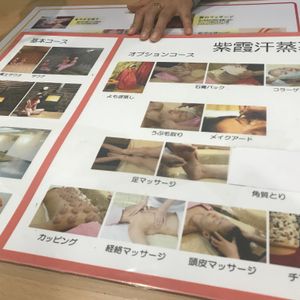 すべて初めての体験で楽しく3時間以上かけてじっくりサービスしてくれました。16時からの予約でお客も私たちだけで基本コースの予約でしたが、マッサージもプラスでお願いしました。サウナ、お風呂、よもぎ蒸し、垢すり、マッサージどれも良かった。垢すりの豪快なおばちゃん達が職人技でgood!マッサージも時間をかけて凄く丁寧!