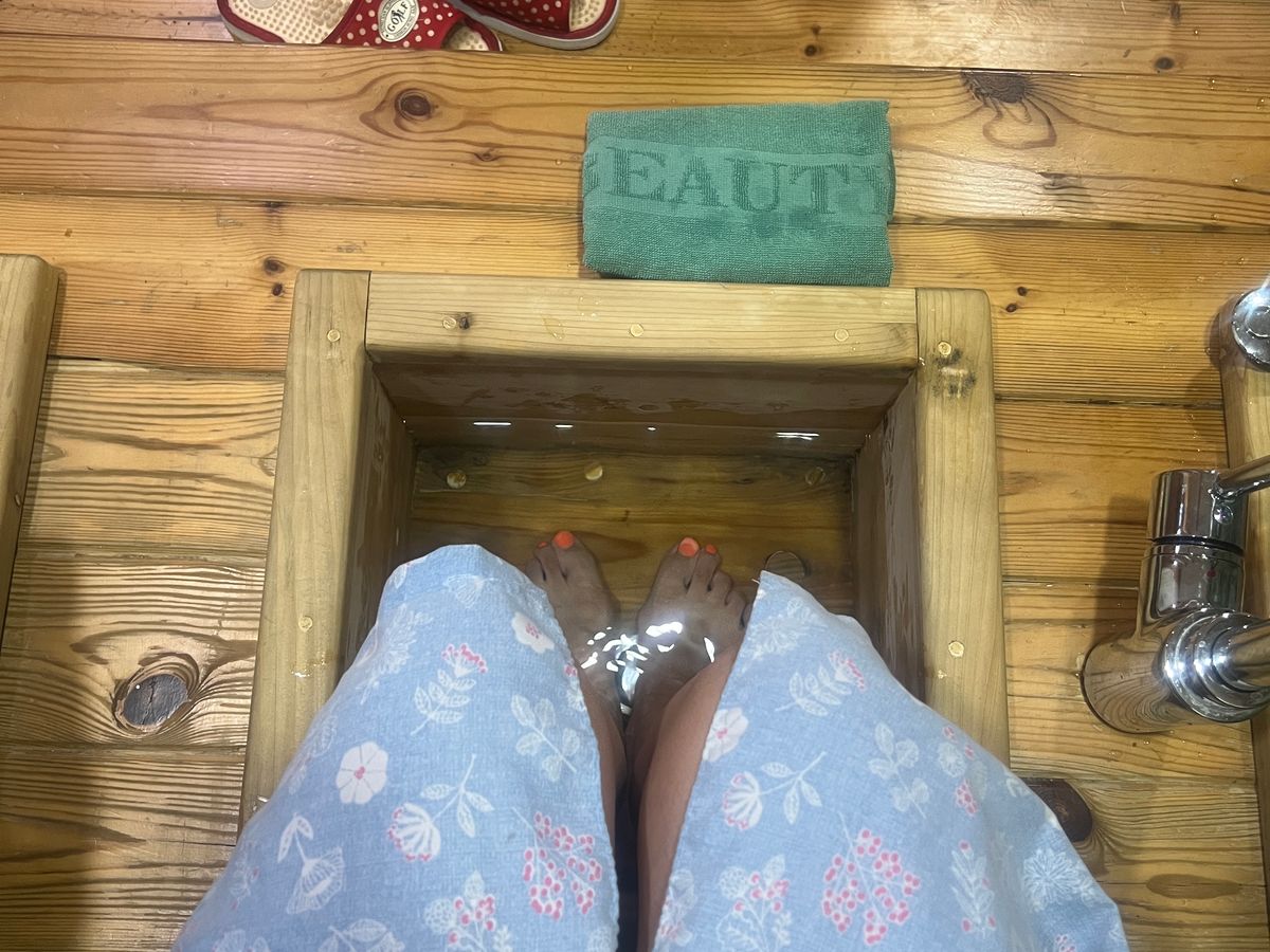 メニューを決めたあとは、着替えて足湯をしました。飛行機に乗って到着してすぐ、伺ったので足のむくみにも効果がありそうで嬉しかったです♡
