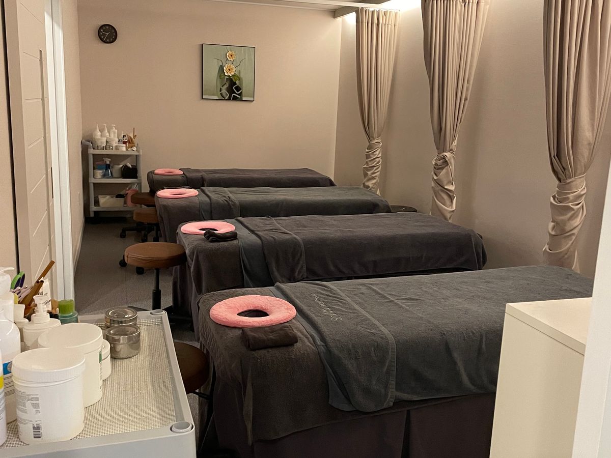 私はまず背中のマッサージから始まりガチガチに硬い肩周りもゴリゴリ音がするくらいだったのにすごく柔らかくほぐしていただきました!とっても気持ちよかったです!次にアクアピルですが初めてやりましたが毛穴の汚れがきれいに取れてお肌がつるつるになりました。骨気は痛かったけど今までやった中で1番即効性がありました!次の日顔がひと回り小さくなりました。その後石膏パックをしていただいて初めて体験しましたが顔が温かくなりその後石膏が固まるのですが固まった自分の顔型ができて楽しい体験でした。同時に足にマッサージマシーンを装着していただいて丁度いい圧力がたくさん歩いた足の疲れを取ってくれました。スタッフの方が日本語ができるのでとても安心して施術を受けることができます。スタッフさんのの対応も優しくて母親もとっても喜んでいたのでこちらのエステにしてよかったと思いました!店内もとっても綺麗で気持ちよく素敵です。最後にいただいたお茶もとっても美味しかったです!また行きます!ありがとうございました!