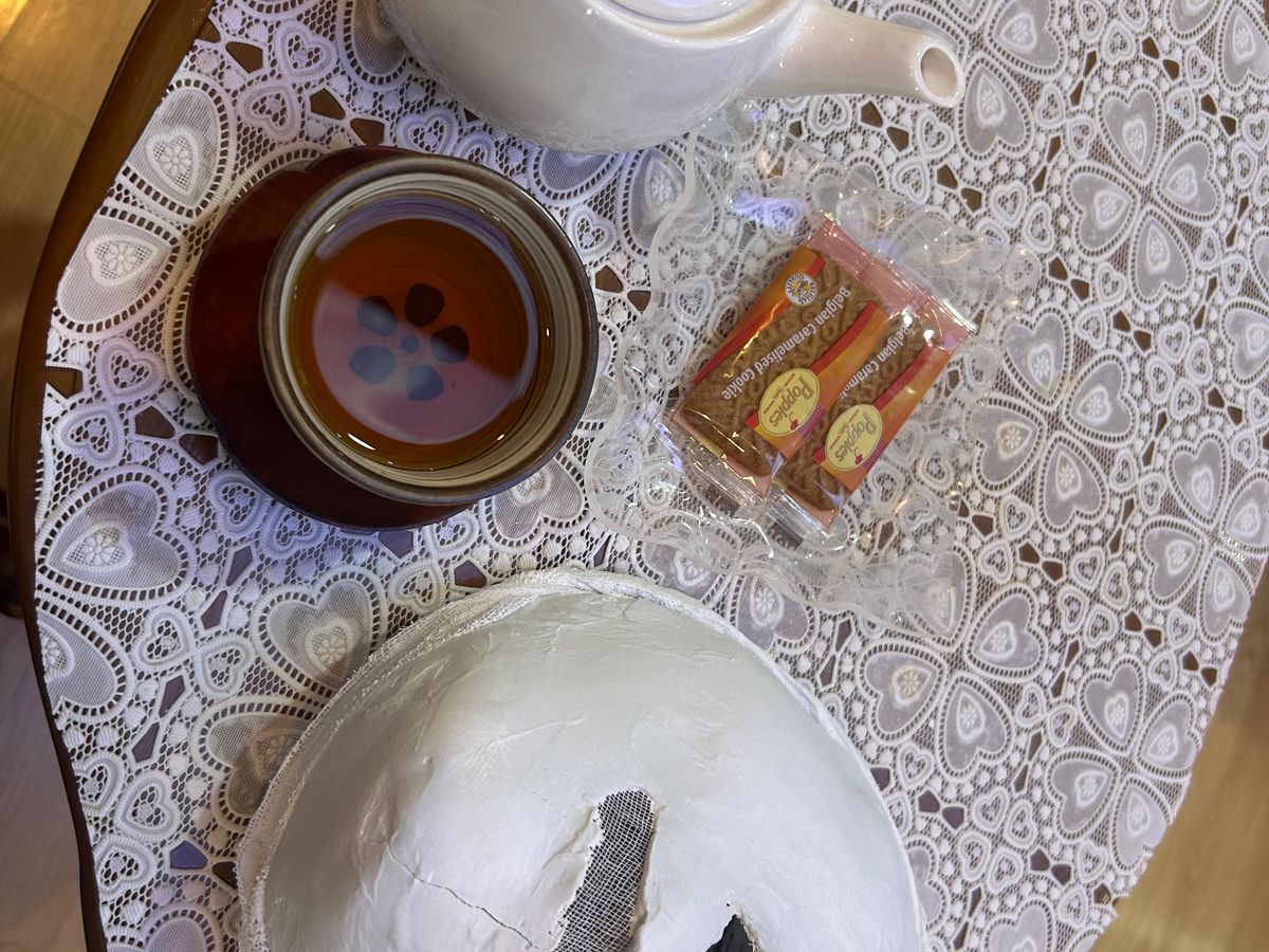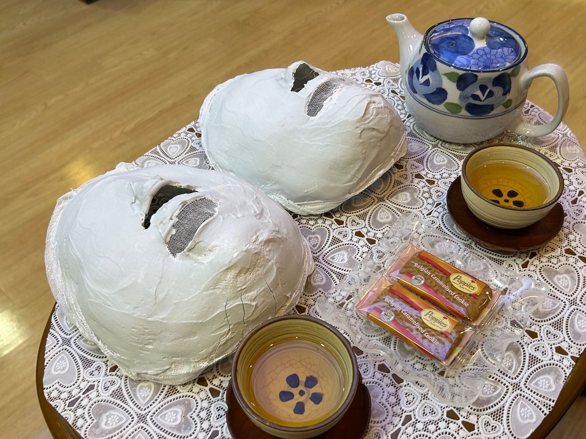 石膏パックも初めて体験しましたが、パックを取った後の型が自分の顔の型になっていて面白かったです。できればその型の写真が撮れたらよかったです。