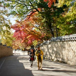 紅葉が素晴らしい季節で、特に昌徳宮は混んでいました。後苑見学は事前に予約してありましたがチケット引き換えが大行列で、間に合わないかと緊張しました。でもドライバーのナムさんに手伝ってもらい、入場時間ギリギリセーフ大丈夫でした。