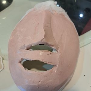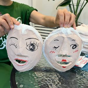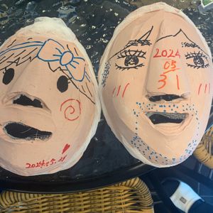 施術後は、母と2人で石膏マスクに顔の絵を書いて、一緒に写真まで撮って貰いました。