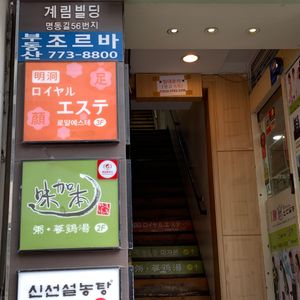 初めての韓国で、初日の夜に伺いました。初韓国だったので場所が少しわかりにくかったのですが、明洞の街の中に、ちょうど迷っている場所辺りに日本人の地図を配っている方がいて道を教えてもらい無事到着。