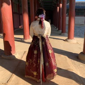 2月中旬でしたが暖かい日だったため、私服の上にチマチョゴリを着るだけで適温で過ごせました。チマチョゴリの数は思っていたより少ないと感じました。上着のチョゴリは向こうの方が選んでくれましたが、ほとんど白色しかなかったように見えました。好きな色をパッと選んで、髪型も可愛くセットしてもらいました!ガイドさんが案内しながら説明をしてくれて、分かりやすいし面白いし、写真も撮っていただけてとても楽しかったです。李さんという方でした。景福宮は宮殿の説明や写真と交代式、北村は街並での写真撮影、仁寺洞はお土産を買う感じです。時間は少し忙しいですが十分楽しめると思います。良い体験ができました。