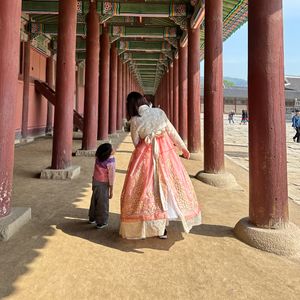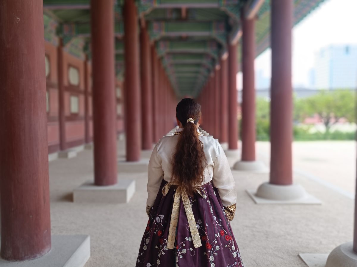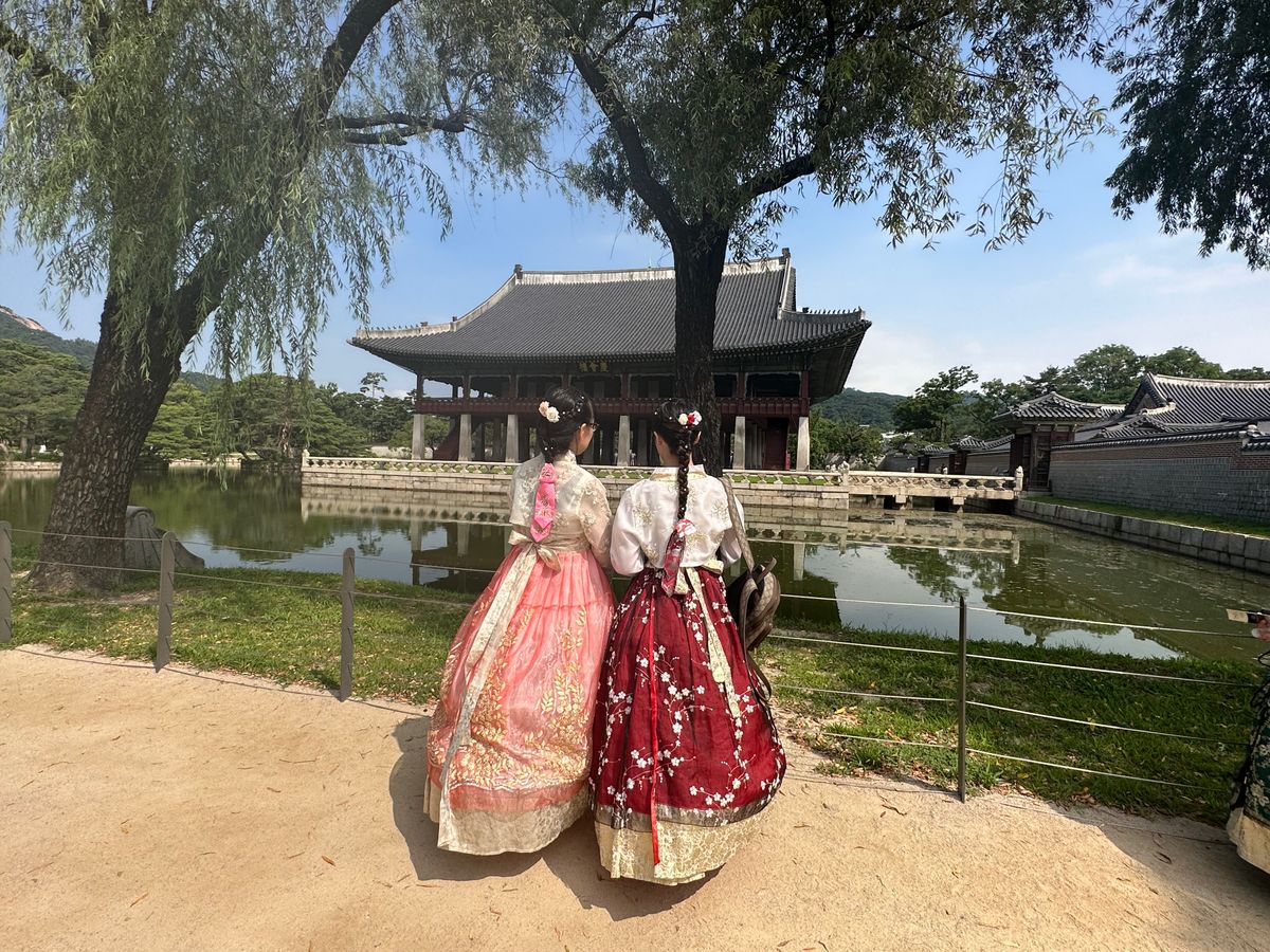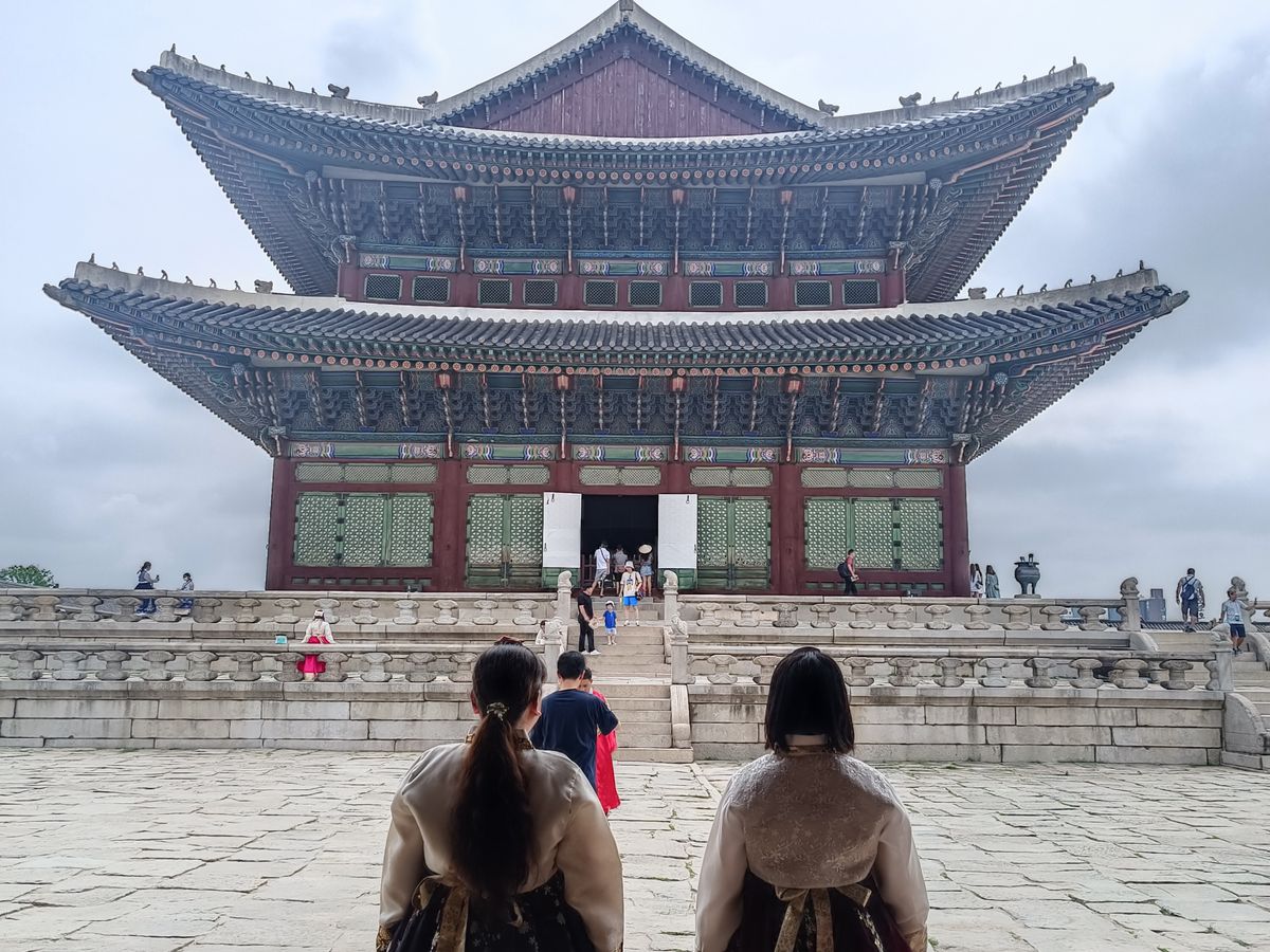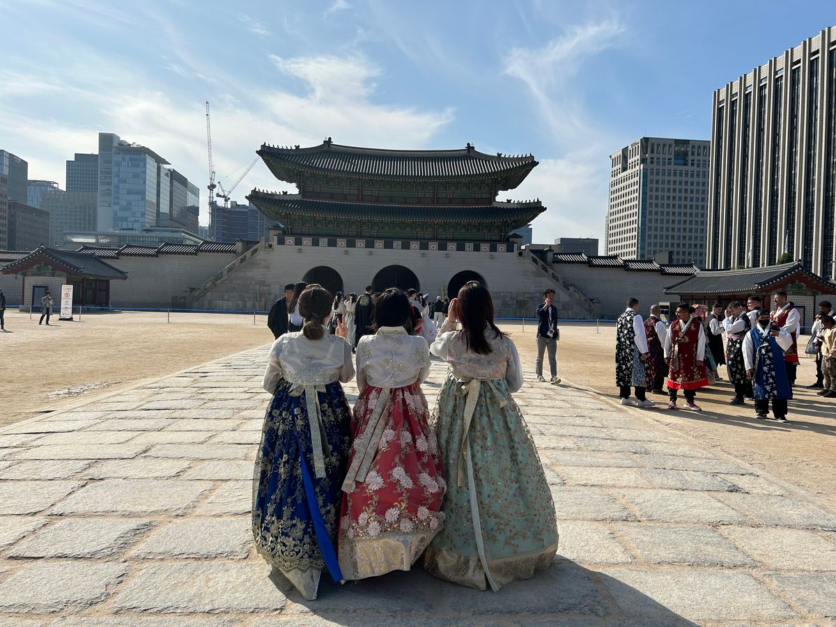 韓服で景福宮巡りをしている人が多く、当時の光景を思い描くことができました。チマチョゴリがカラフルで、髪飾りをつけ、皆んな可愛かったです。