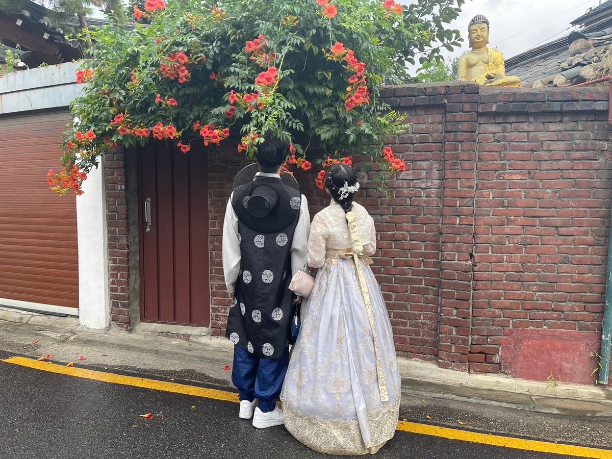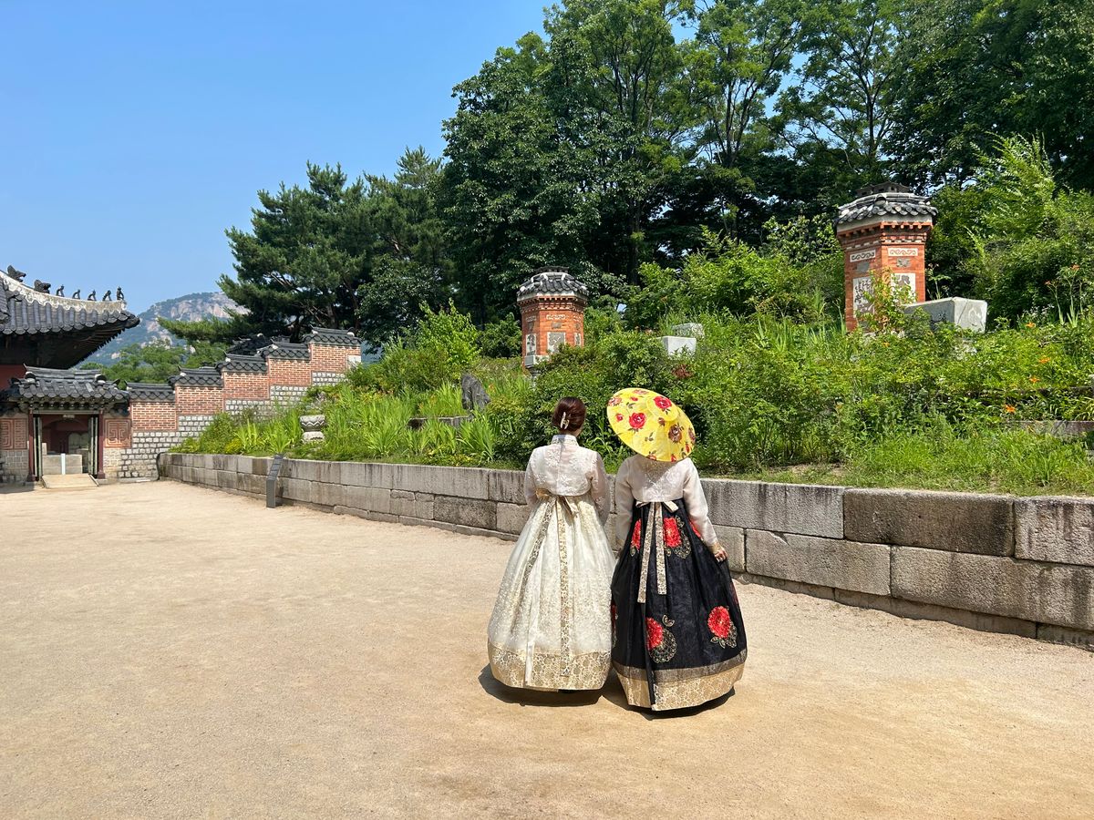 友人たちが是非チマチョゴリを着たいとのリクエストで、若くないしなと思ったものの、実際着てみたら街に馴染み、色んな国の老若男女が着て楽しまれていて、こちらも楽しくなりました。