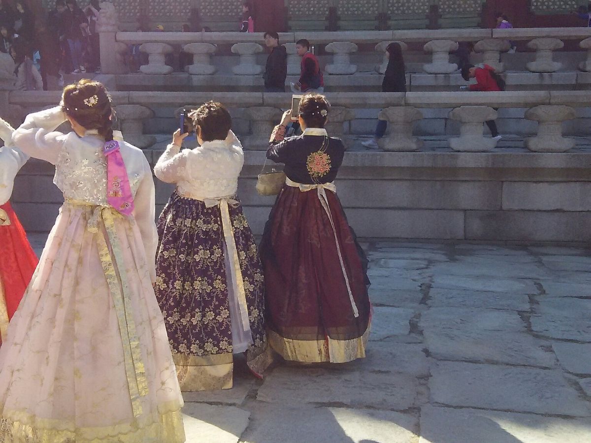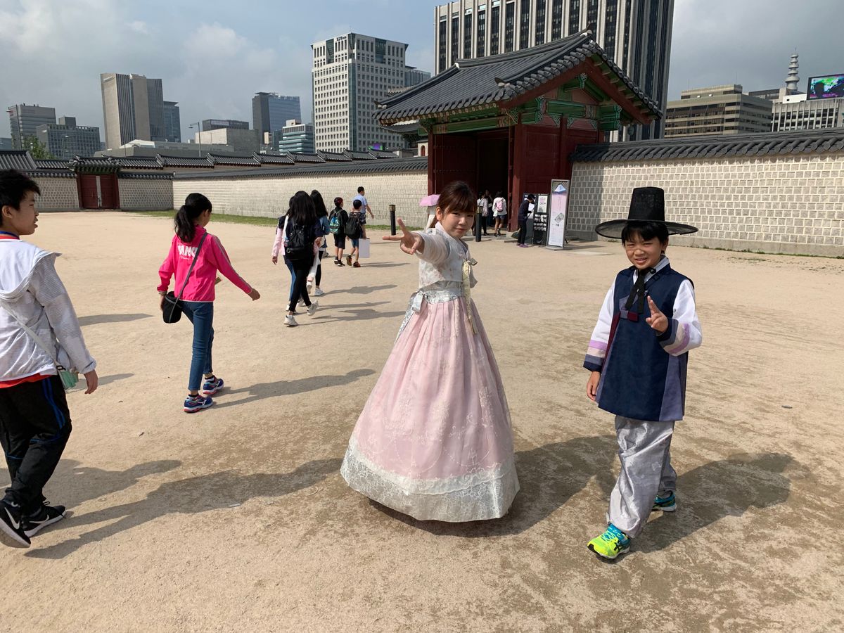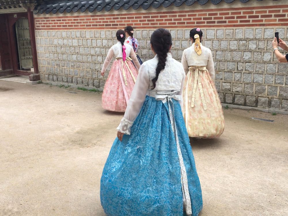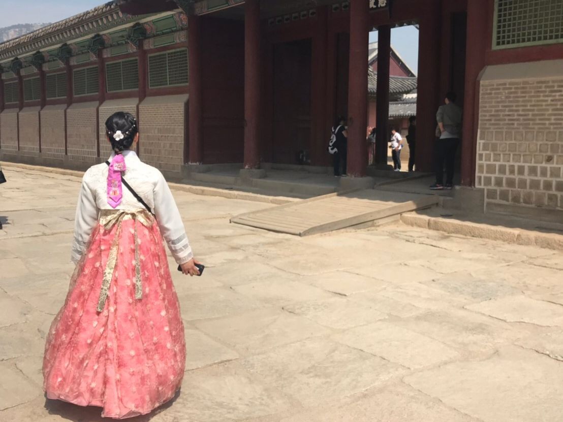 初めての韓国でチマチョゴリを着て色々な写真が撮れました。とても満足の半日。とにかくガイドさんが素晴らしく、これが買いたいけどどこで売ってるのかな?と尋ねると、自由行動の間に調べておいてくれて、丁寧に教えてくれました。美味しいお店なんかももちろん教えてくれました。